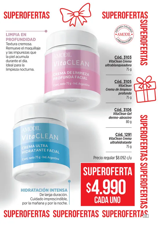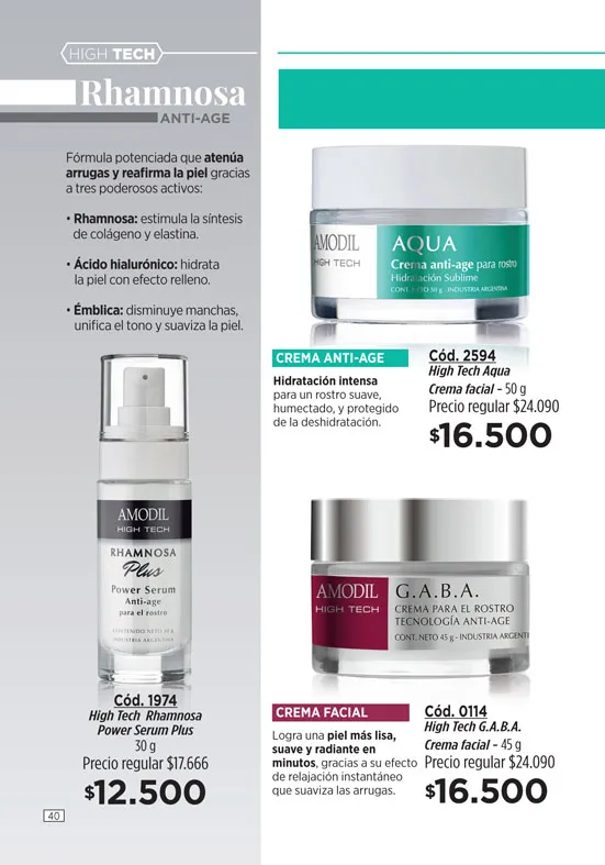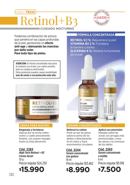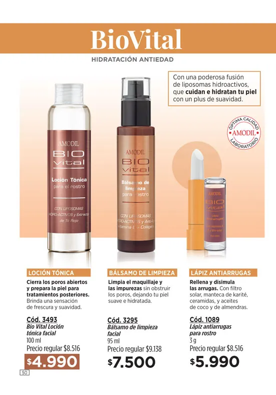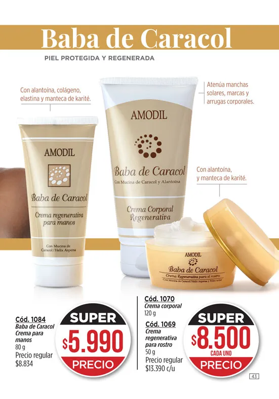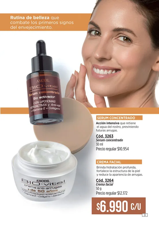- Crema regeneradora Anti-Age + de 45, de 45g, de la línea Amodil RejuveneCe; elaborada con Vitamina C y Retinol. Promueve la eliminación de las molestas arrugas y líneas de expresión. Pag 3.