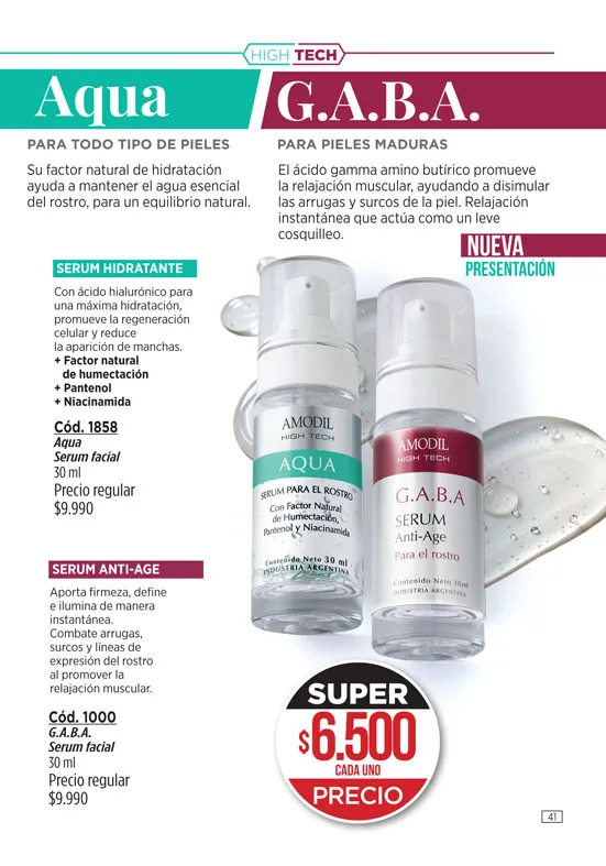 - Da una nueva vida a tu piel con el maravilloso Serum para el rostro de la línea Amodil de 30ml, con principios activos que ayudará a tu piel a verse más juvenil y fresca. Pag 4.
