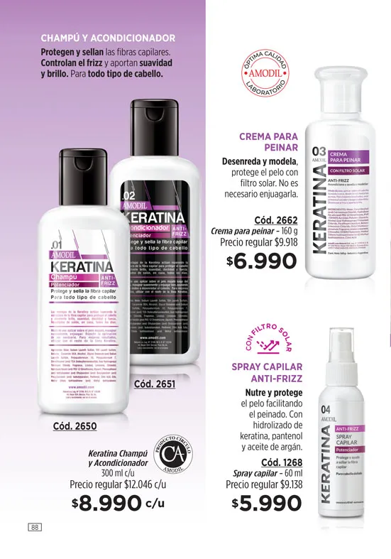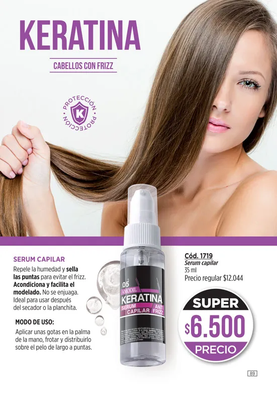 - Serum fortalecedor capilar Cerámicas de la línea Amodil, restaura e hidrata las puntas florecidas, 35 ml. Pag 13.