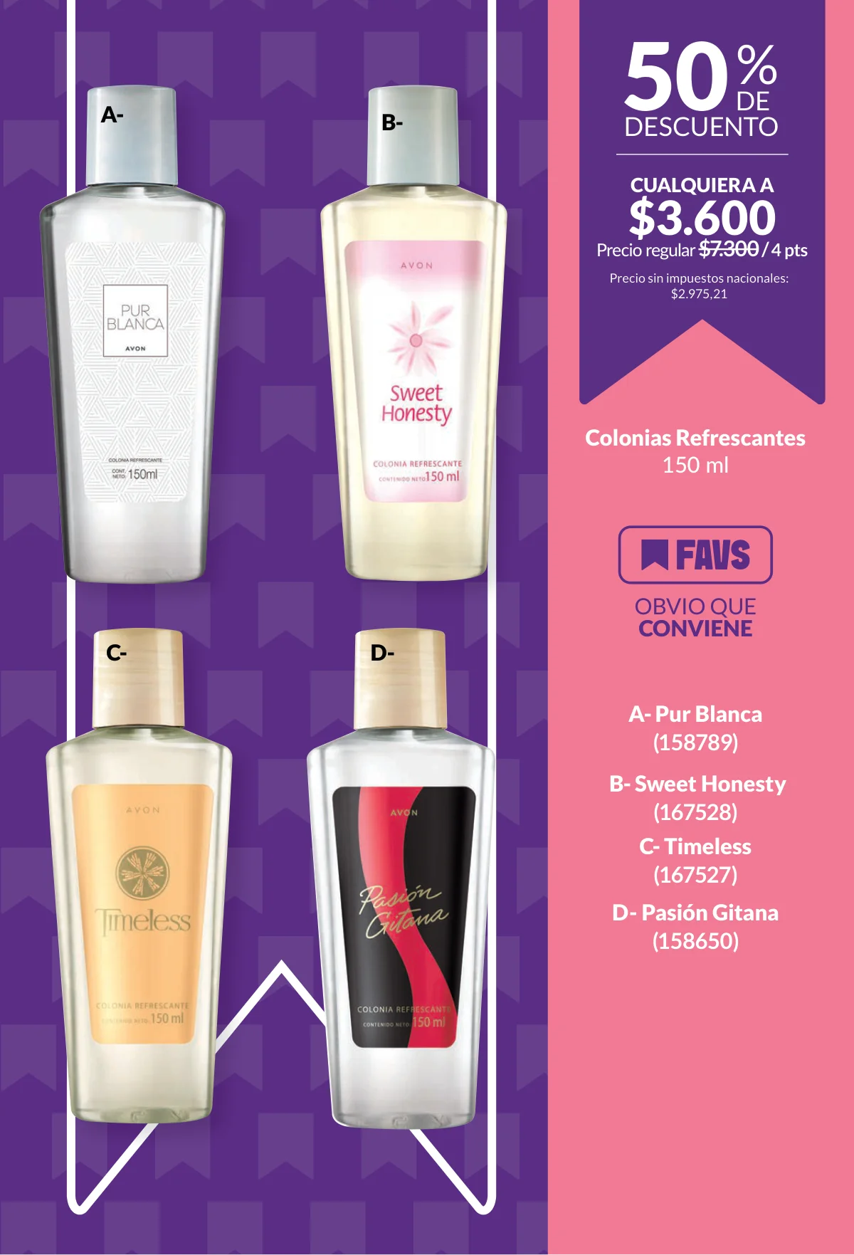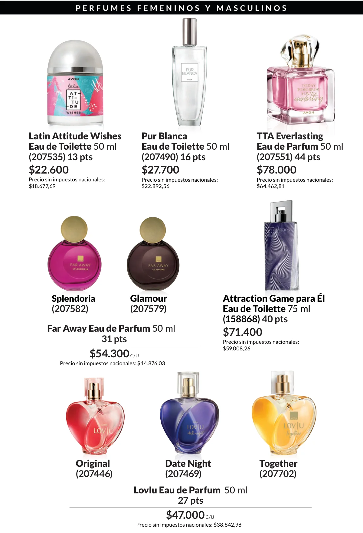 Las notas más deliciosas que llena de vida tus días están en Avon. Este mes tenés que alegrar cada momento con las fregancias más delicadas de la marca: Avon Collections, Today, Attraction, Aspire, Rare Flowers. Imari, Floral Frutal y muchas más para dama.