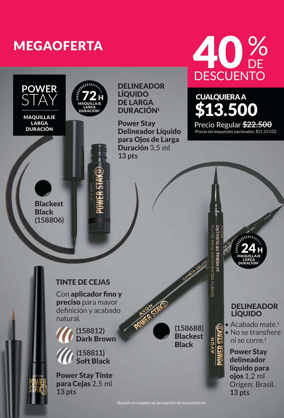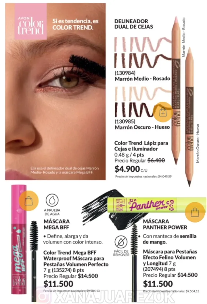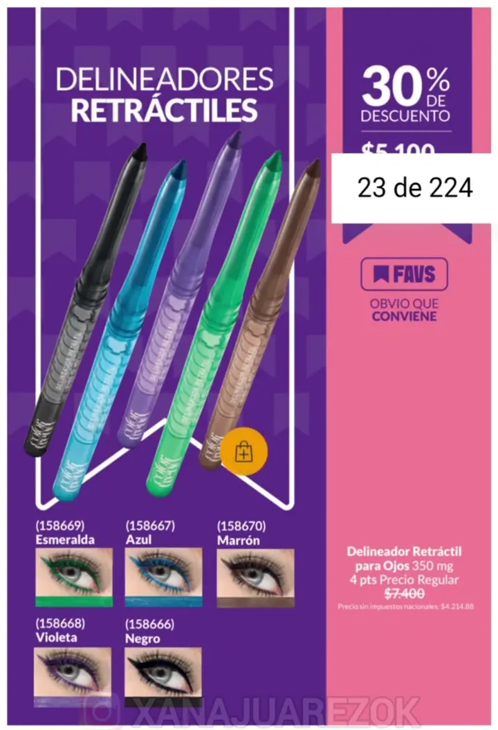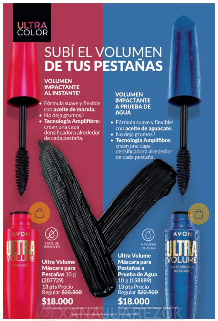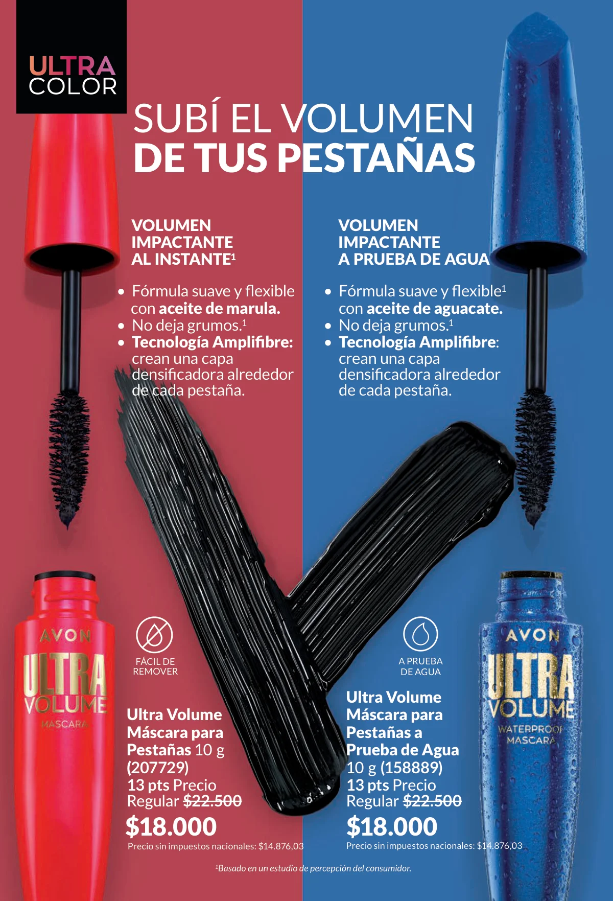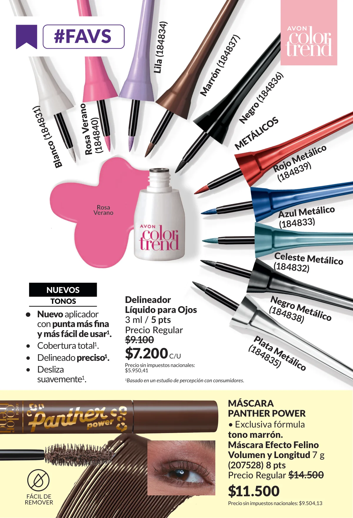 Para iniciar y ver con mejor perspectiva, las máscaras para pestañas efecto súper long es lo primero a destacar. Seguidamente, los delineadores líquidos, estos de colores y a un precio de 2 x 1, son un infaltable en tu próximo pedido.