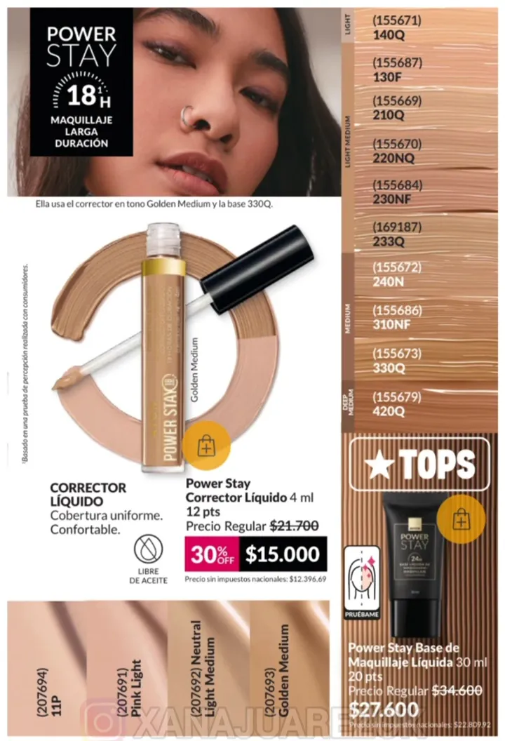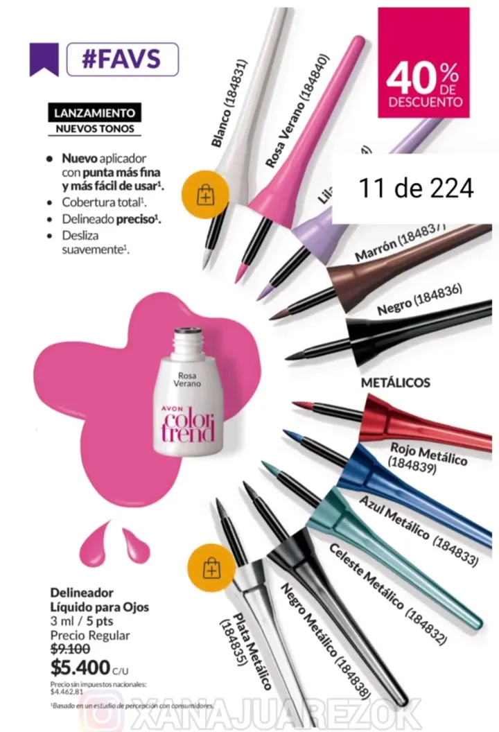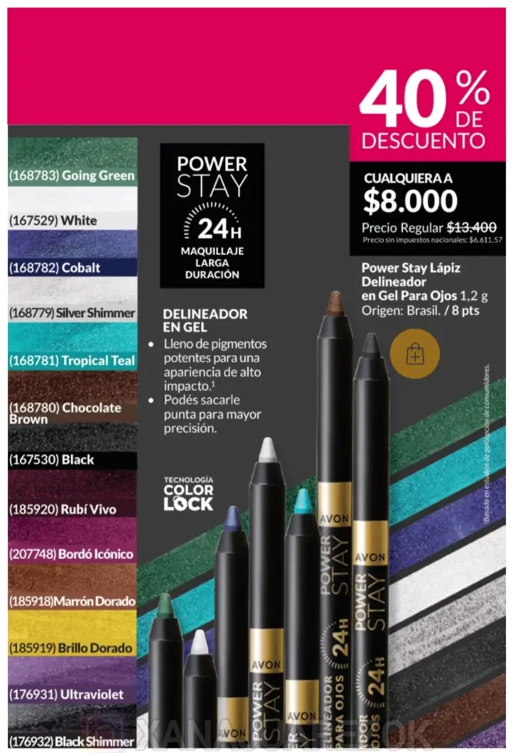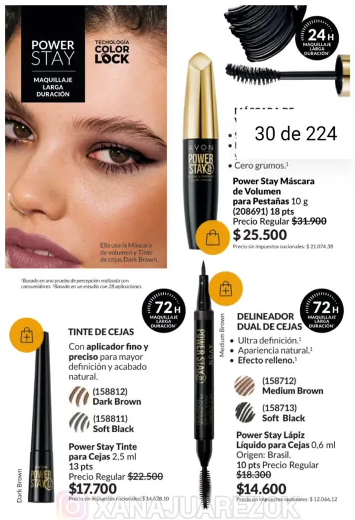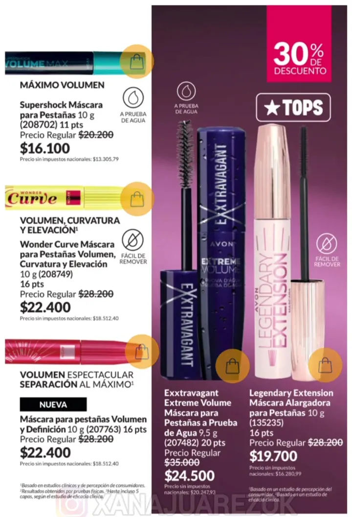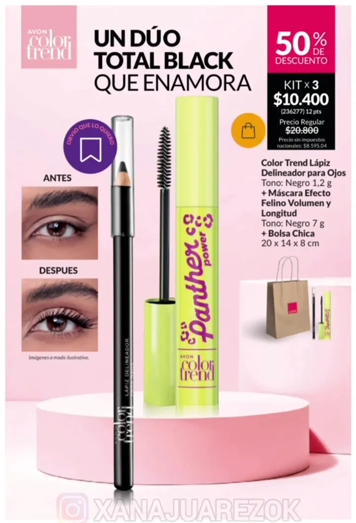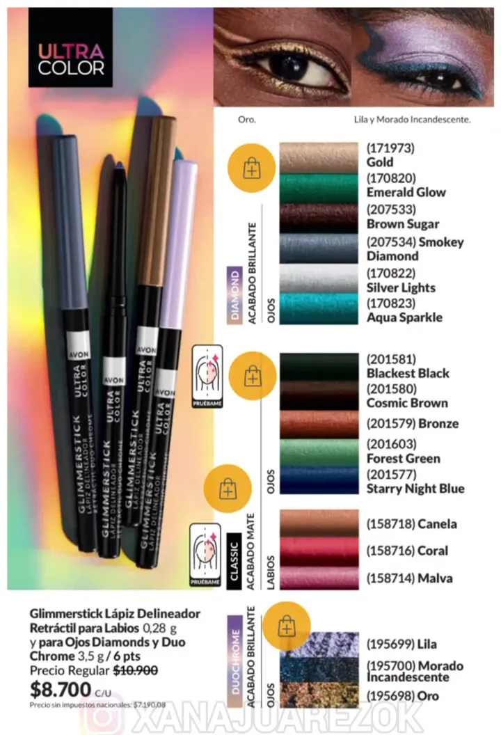 Para iniciar y ver con mejor perspectiva, las máscaras para pestañas efecto súper long es lo primero a destacar. Seguidamente, los delineadores líquidos, estos de colores y a un precio de 2 x 1, son un infaltable en tu próximo pedido.