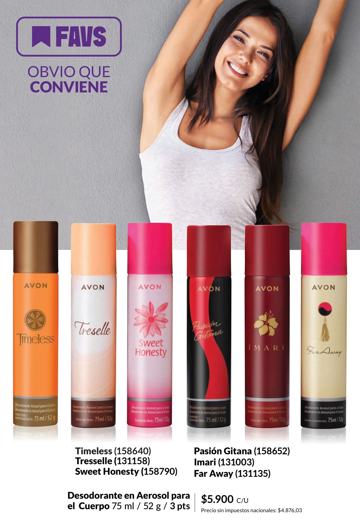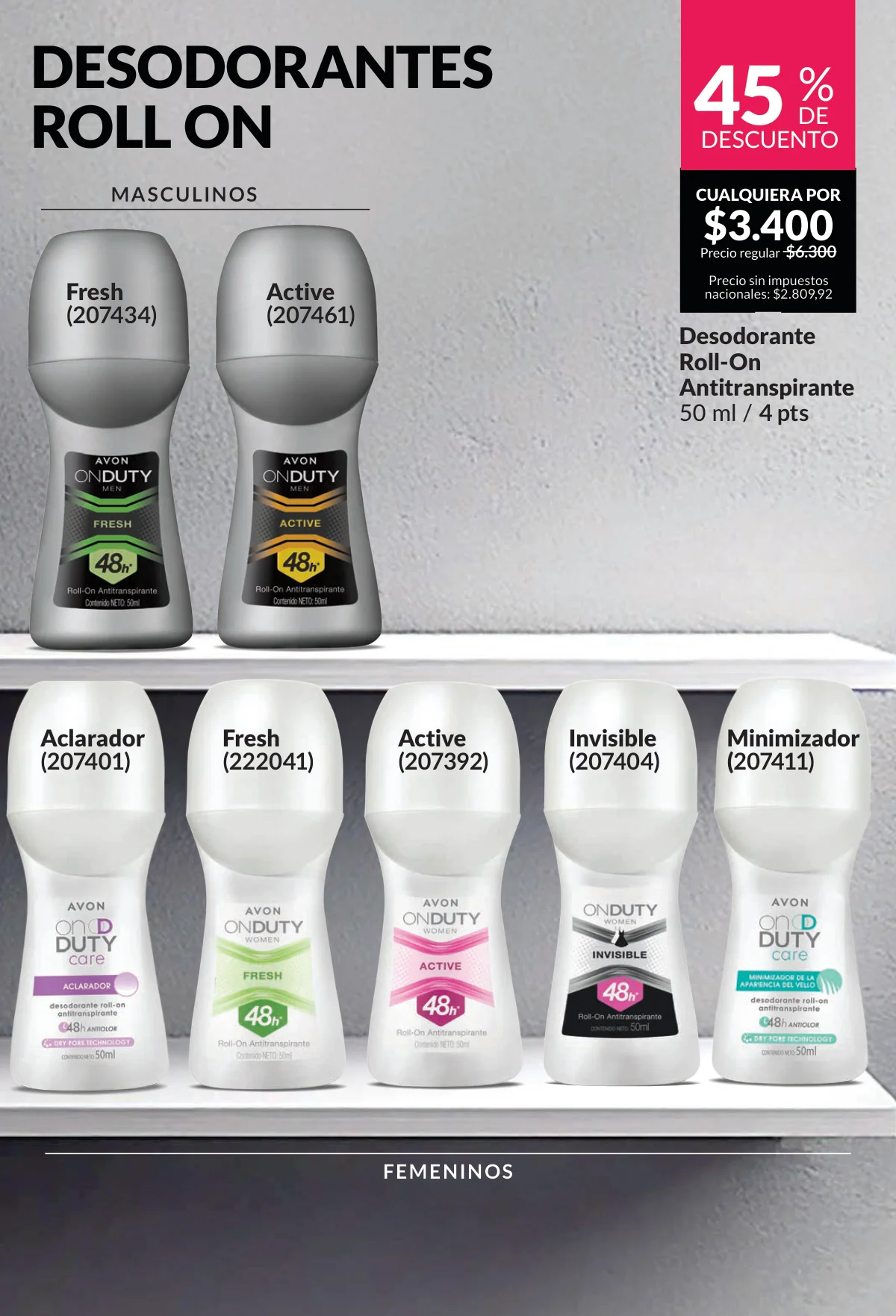 Hay mucho más en esta Avon campaña 3 2026 para vos y los tuyos. Regala el cuidado personal más adecuado con cualquiera de las fragancias de desodorantes en aerosol o roll-on. Estos a un 30% off.