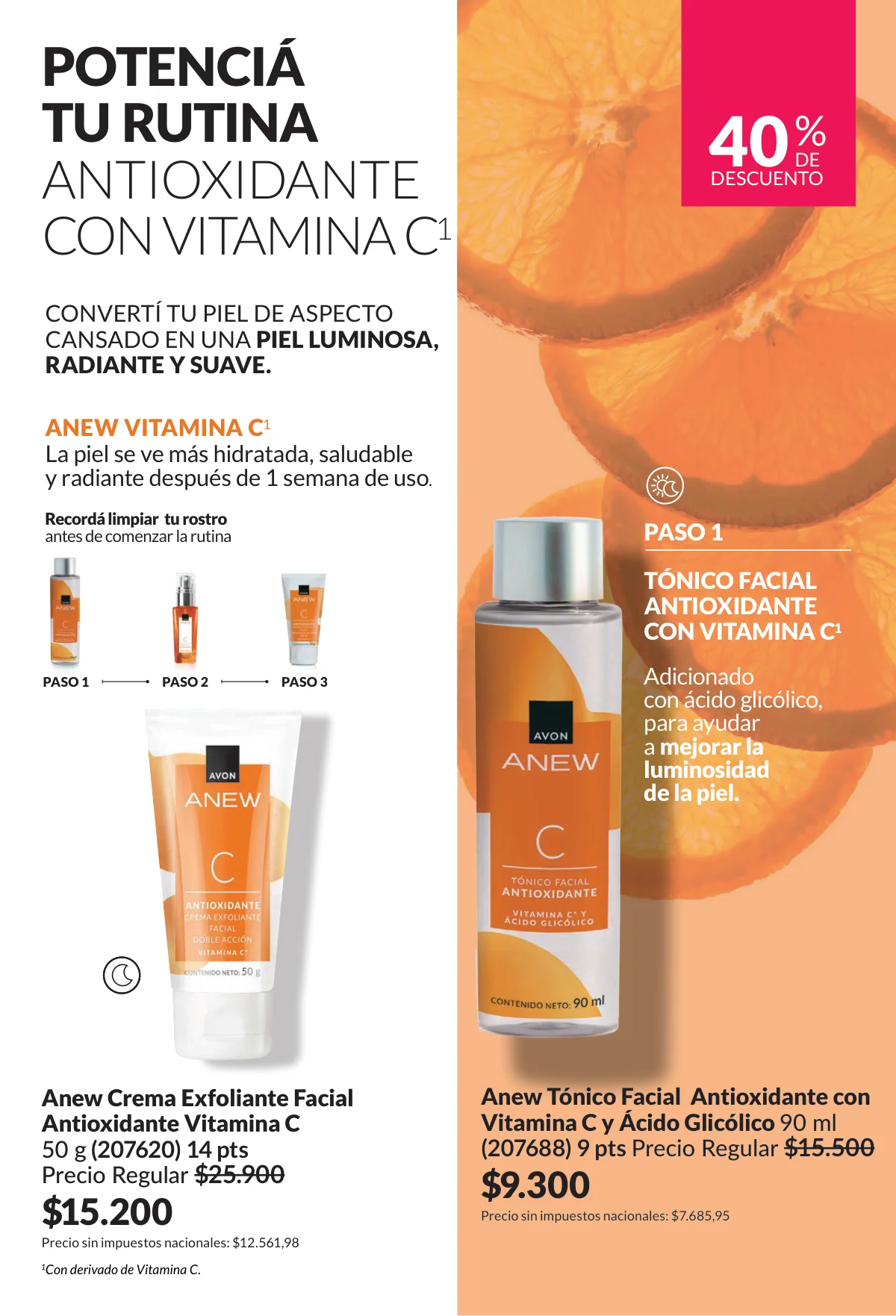 Para el rostro sabés que Anew es líder en cuidado facial. Hay mucho en este catálogo Avon campaña 3 2026 pero destacamos a un excelente precio (30% off) el sérum con vitamina C.