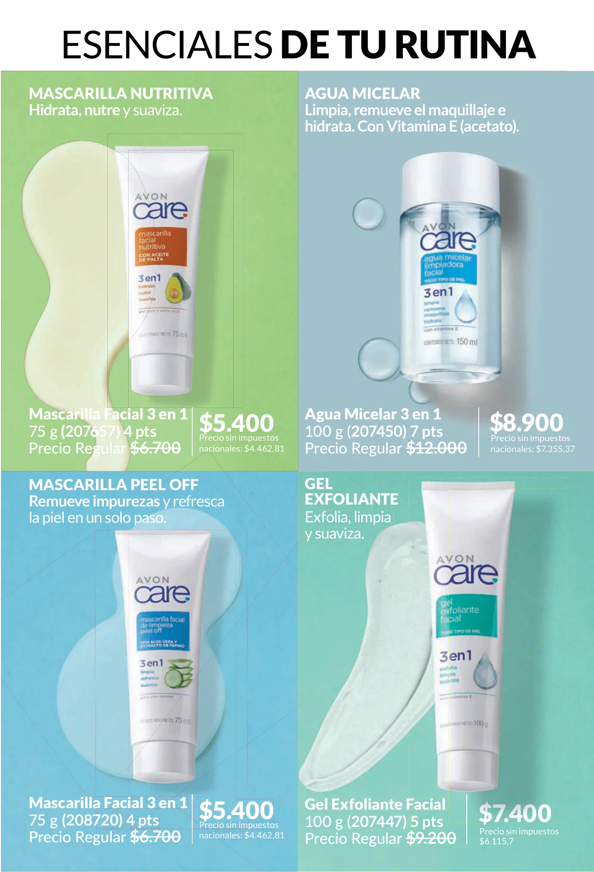 Para pieles sensibles, el agua micelar de Avon es perfecta para limpiar a la vez que dar un efecto calmante. A un 30% off consigues las mascarillas potenciadoras perfectas para combatir los signos de la edad.