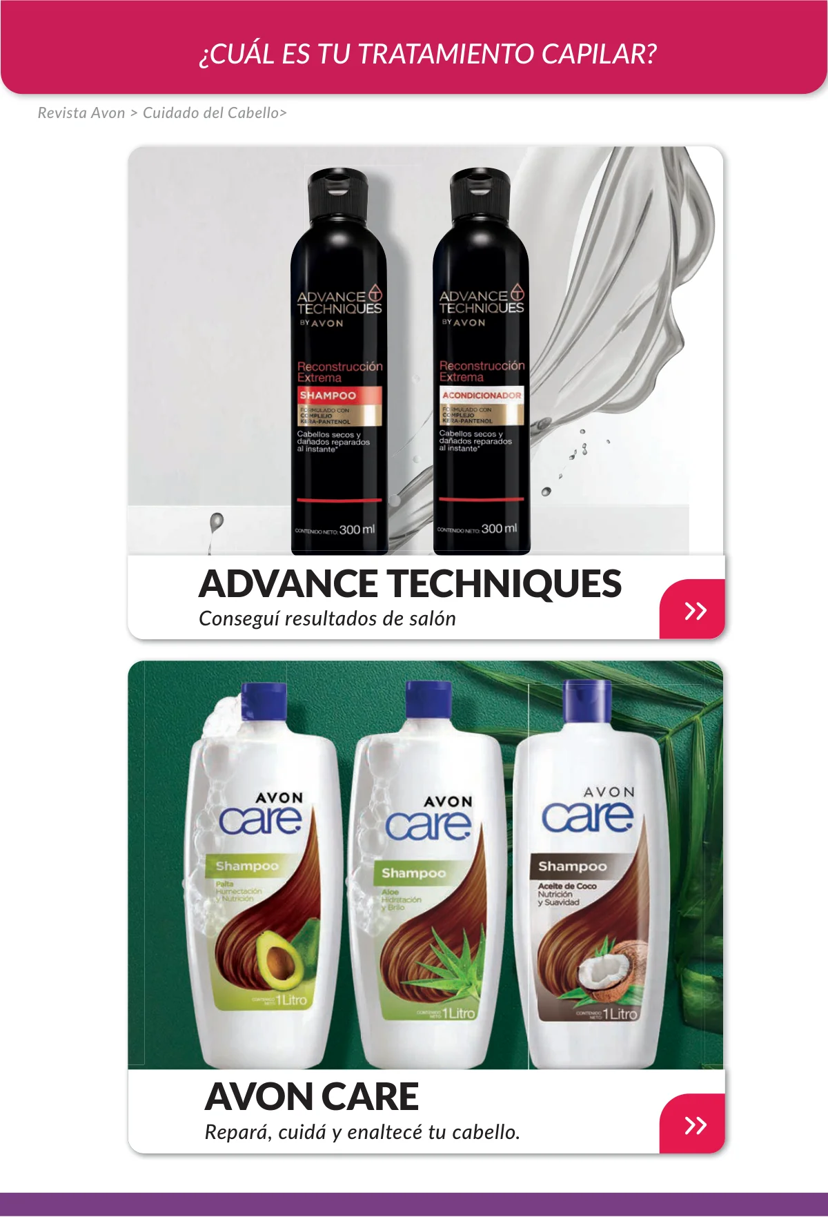 La línea Advance Techniqueses la llamada para fortalecer, acondicionar y proteger tu cabello. No dejés por fuera de tu pedido de este mes las mejores propuestas de la línea líder de Avon para el cuidado capilar.