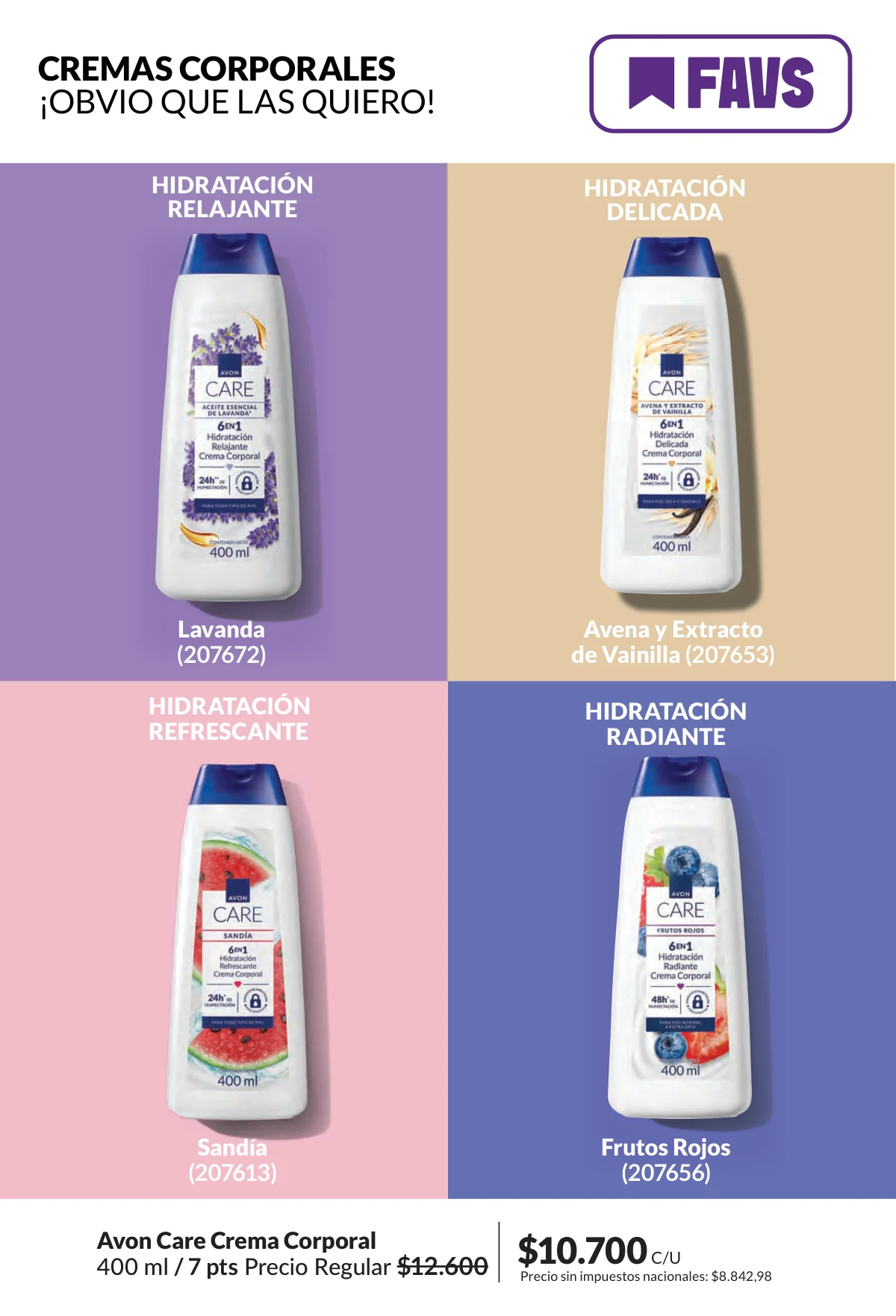 Y sin duda Care sigue dominando el gusto del cuidado corporal con toda su gama de cremas, lociones, shampoo y más para vos que amas cuidarte como solo podés hacerlo con tu marca Nº1: Avon.