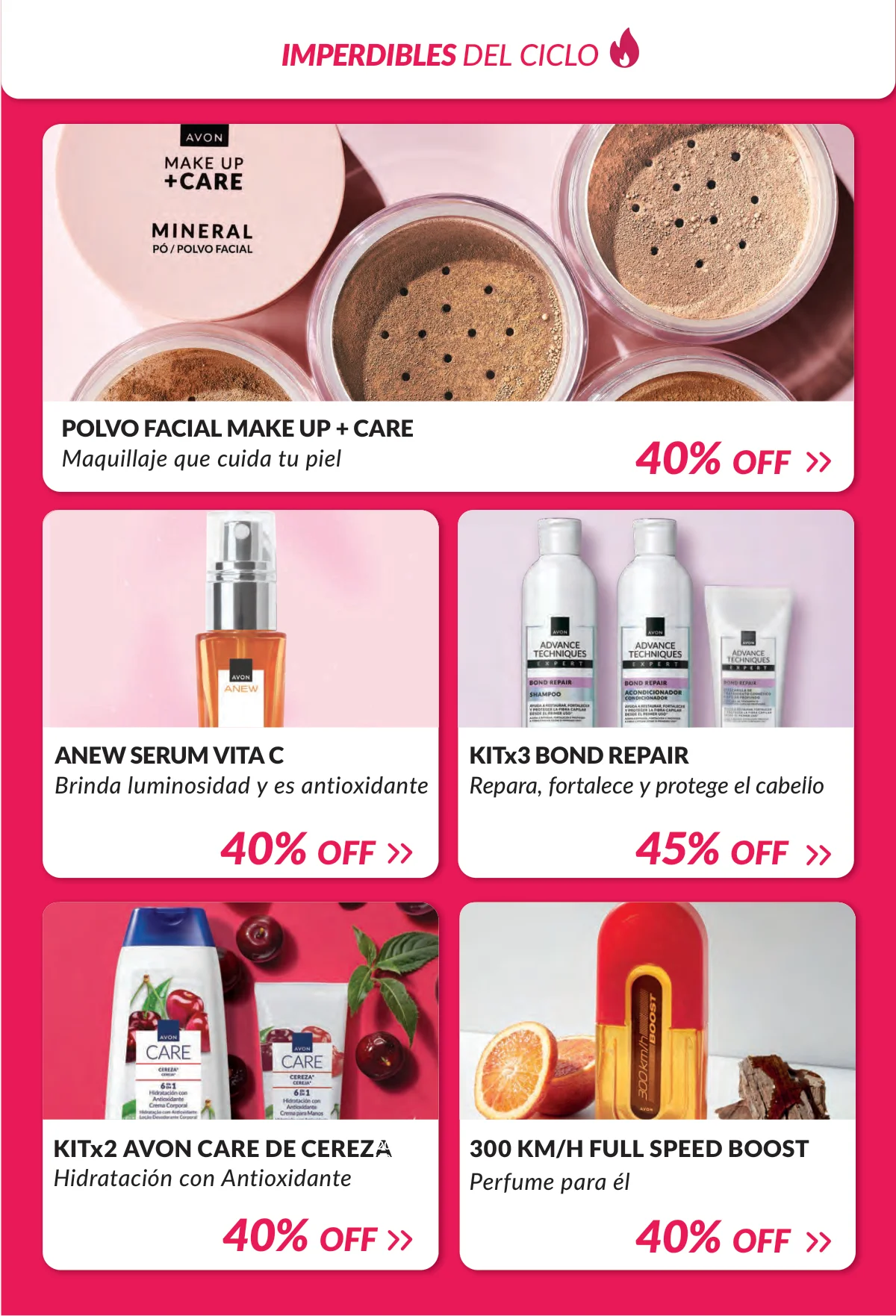 Avon cuida de ti en esta Avon campaña 6 2026 y por eso trae descuentos en las líneas y productos que más amás. Los de cuidado facial de AVON, están a un excelente precio, igual que las mascarillas y el limpiador de triple acción.
