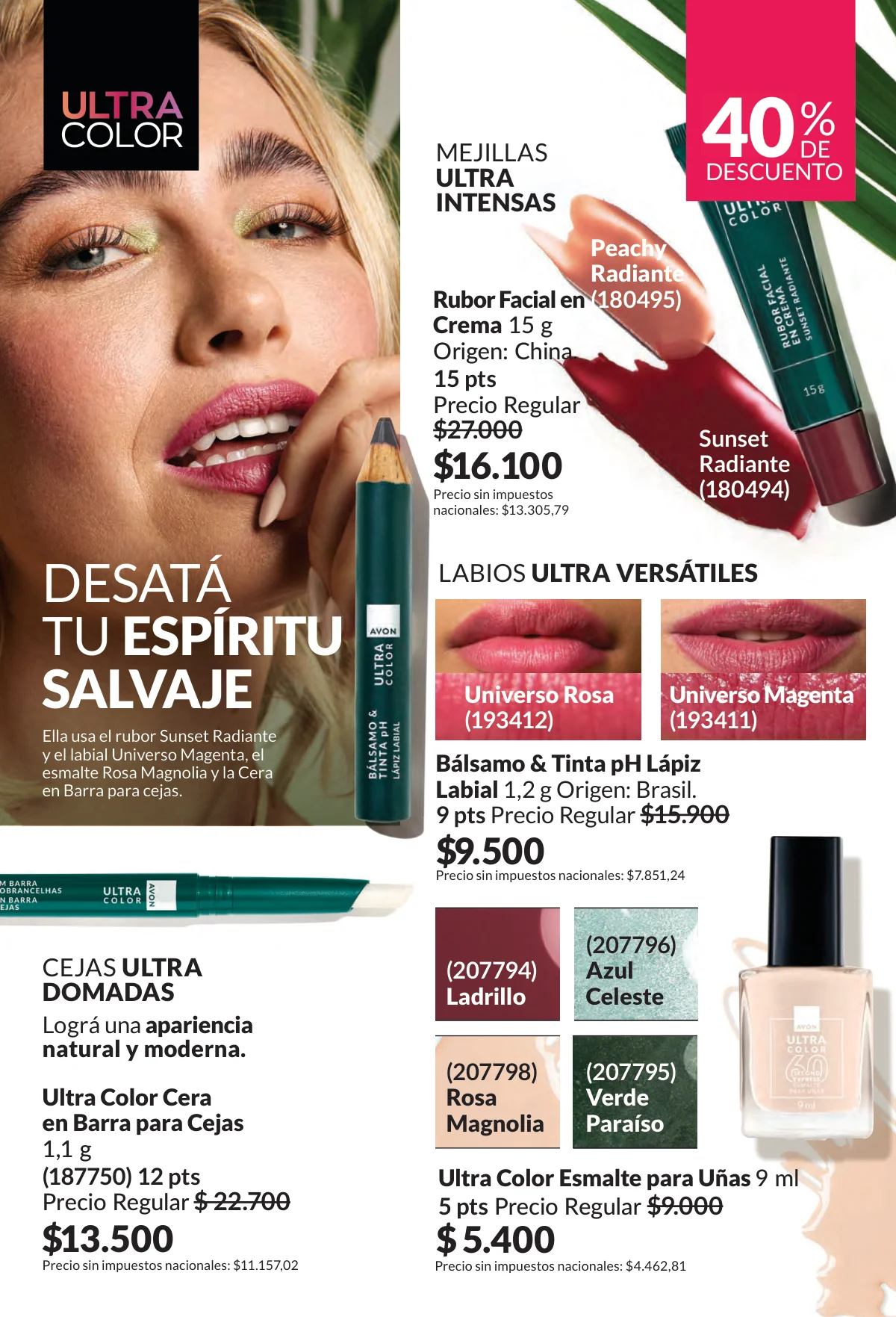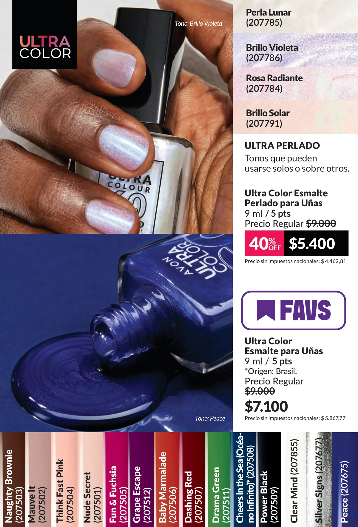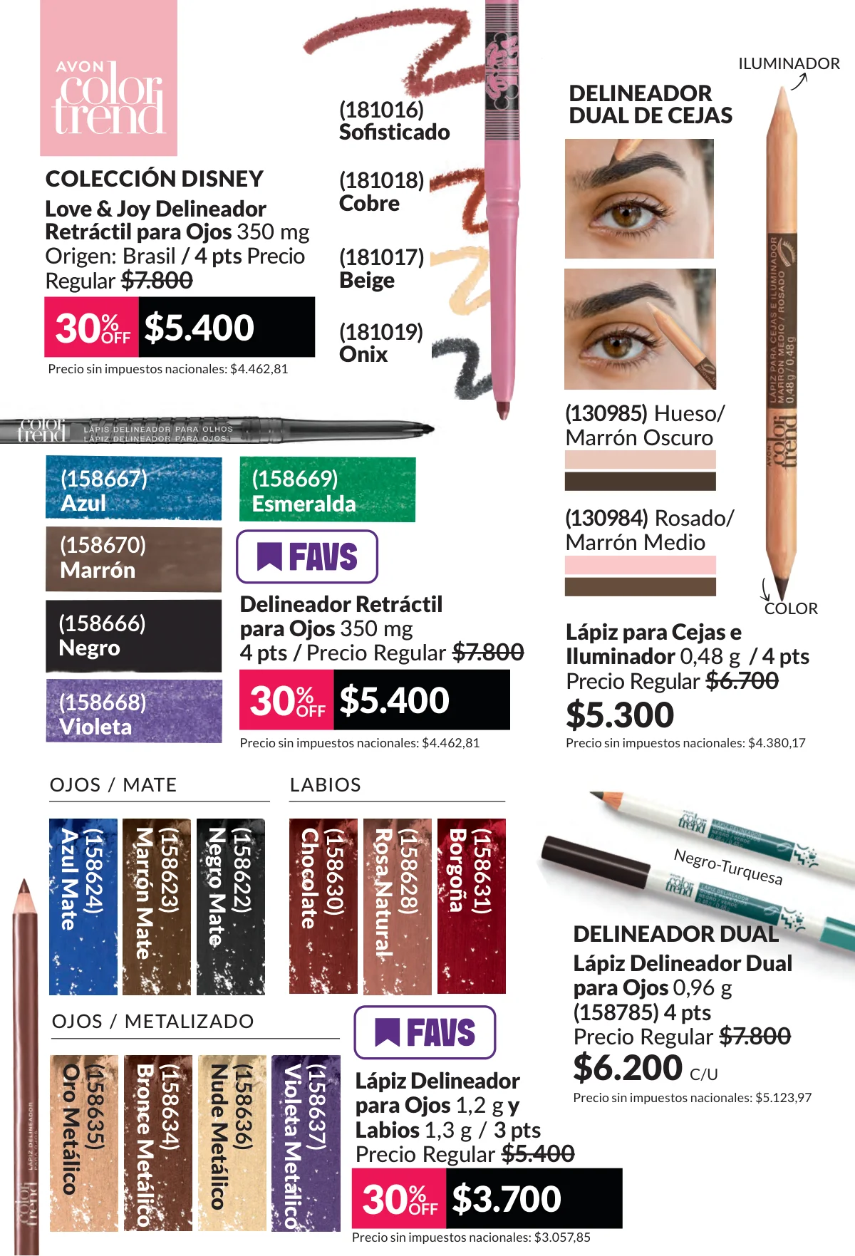 Y para las uñas también podés encontrar ofertas en marcas variadas como Pro Color o Color Trendy con su esmalte glitter a precio de lanzamiento. No podemos dejar por fuera las líneas de bases. Llevá Urban a 40% off y las barras de corrector de ojos al 50% off. Todo con la calidad Avon Argentina que más te gusta.