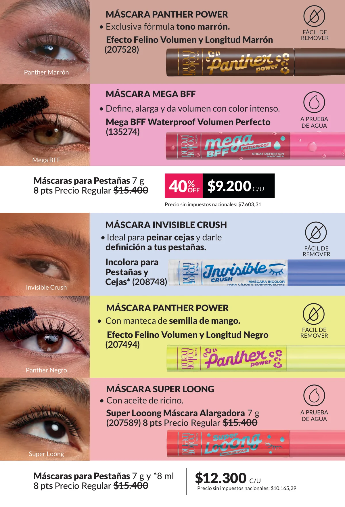 ¿Te gusta la máscara Euforic? Pues este mes te la llevás a 40% off. ¿Más en máscaras de ultra duración, alargamiento y para un mayor volumen? Entonces opta por Unlimited, True o Ultra Volumen a 35% de descuento.