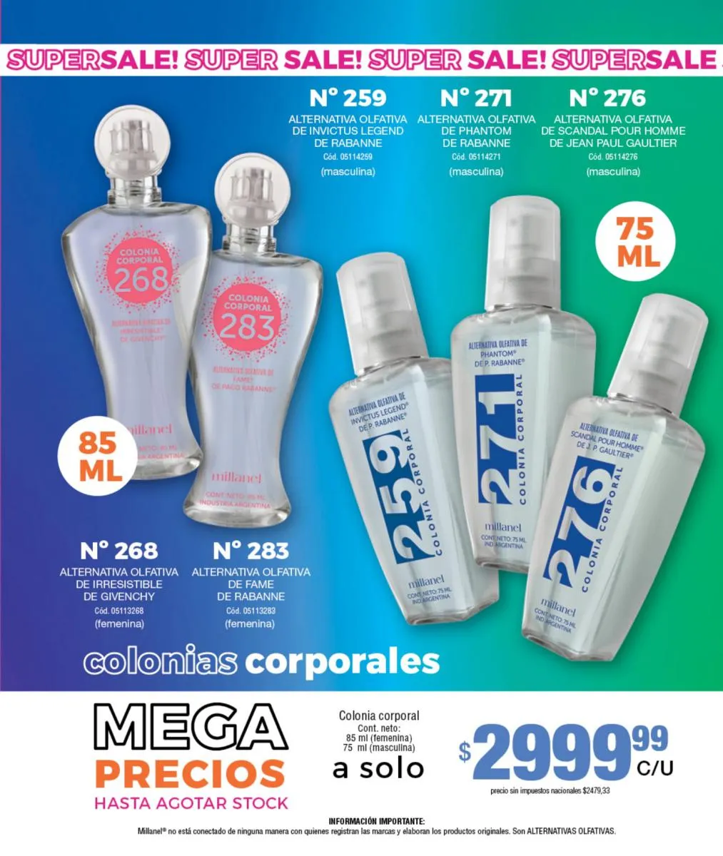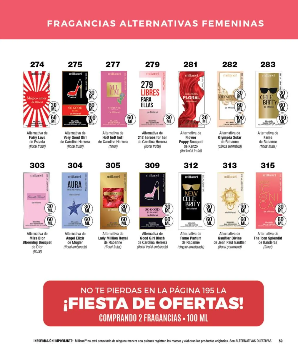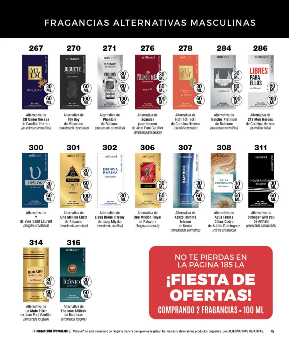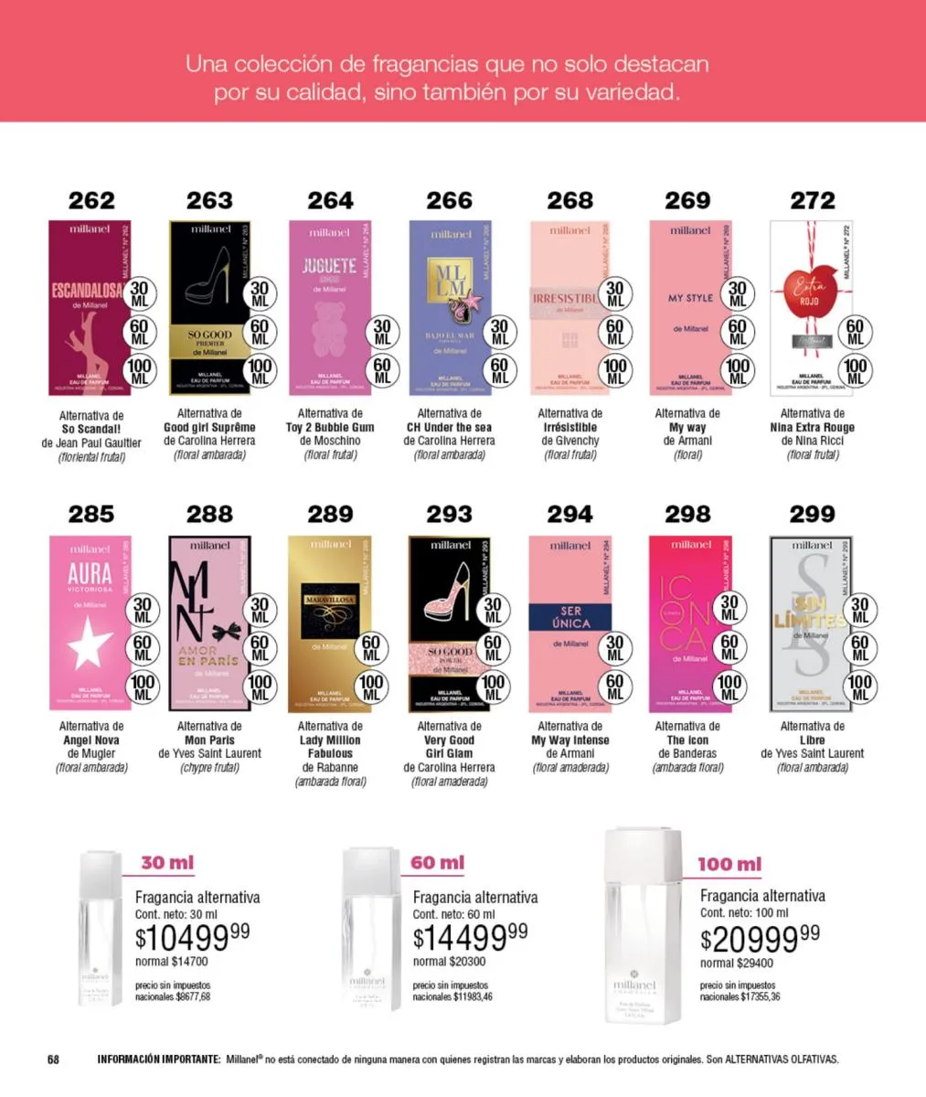 - Para ellas: Irresistible, CH, Sexy, Lady M y Sweet Millanel.