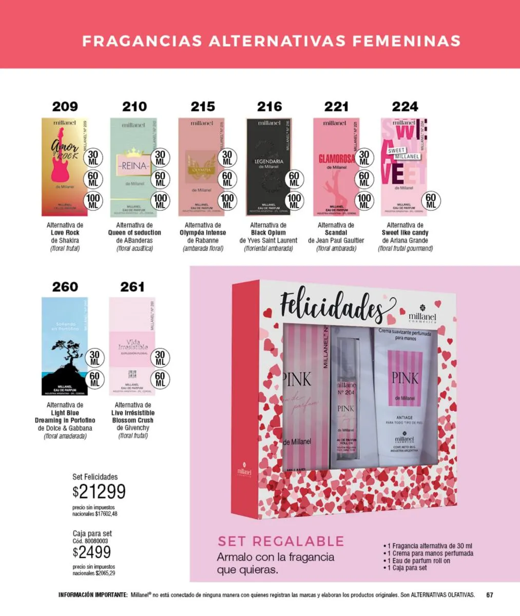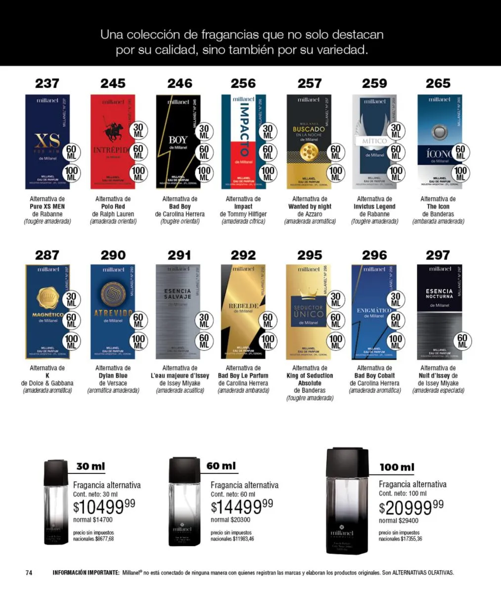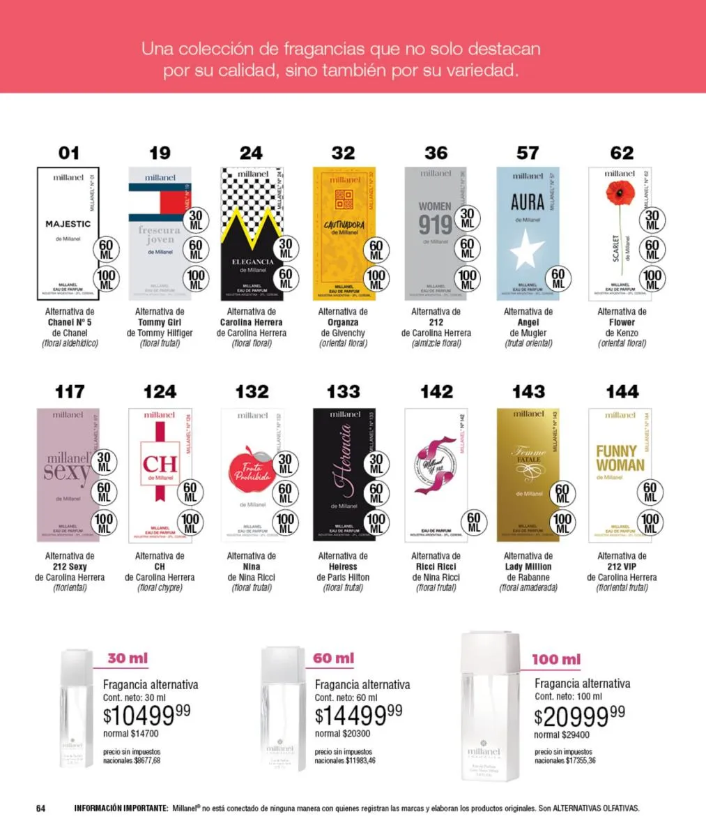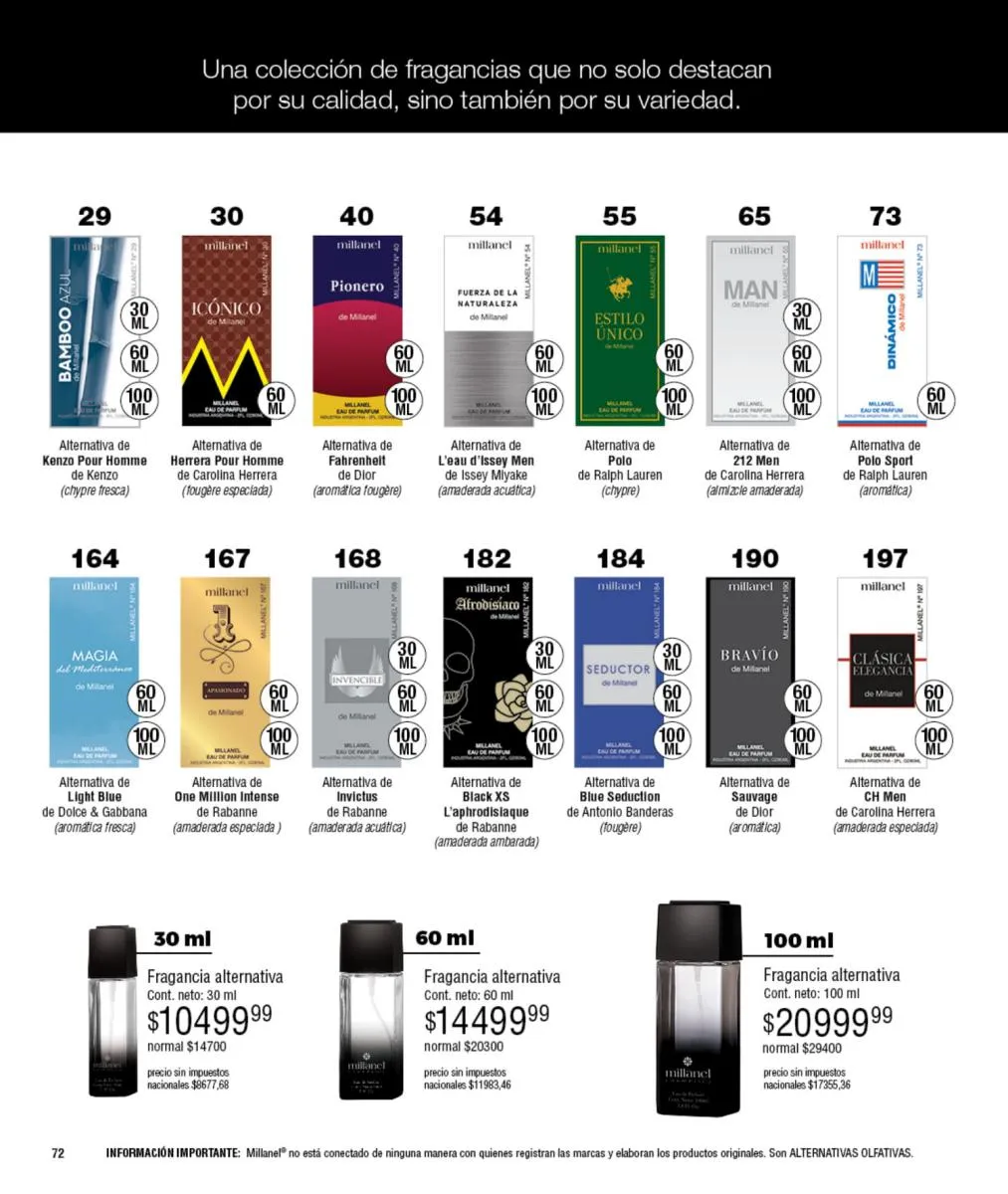 - Para ellas: Irresistible, CH, Sexy, Lady M y Sweet Millanel.