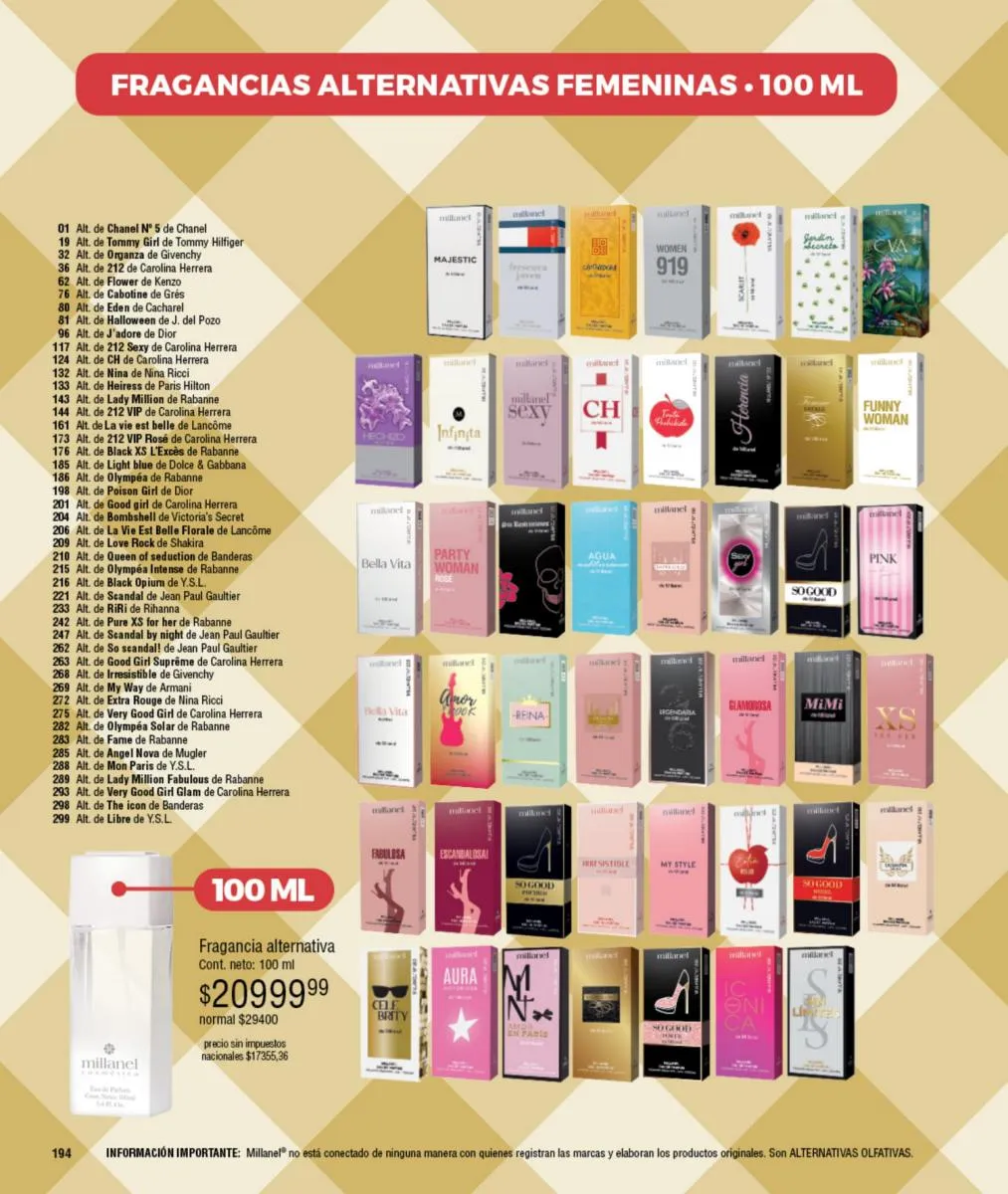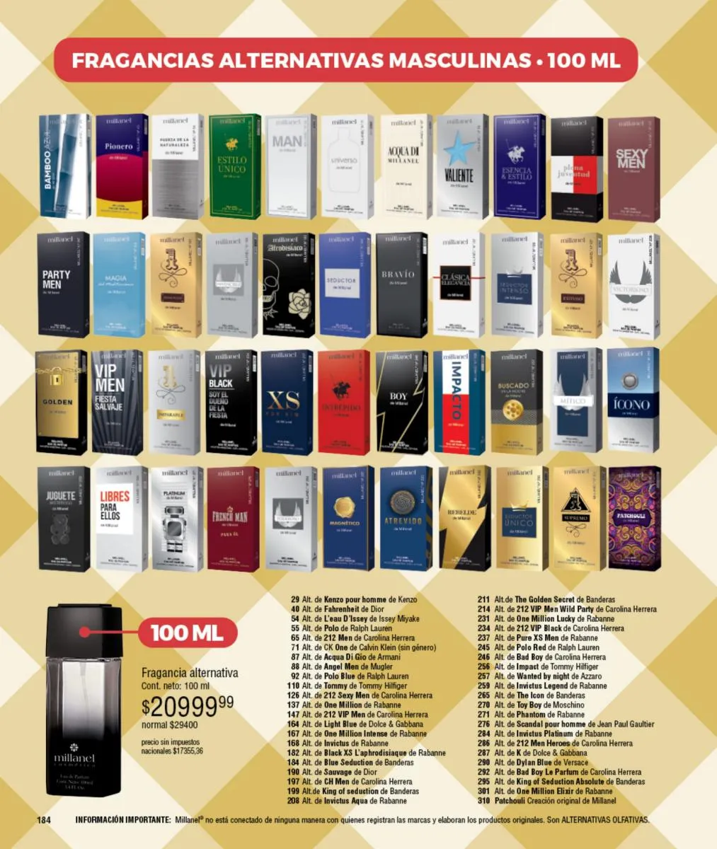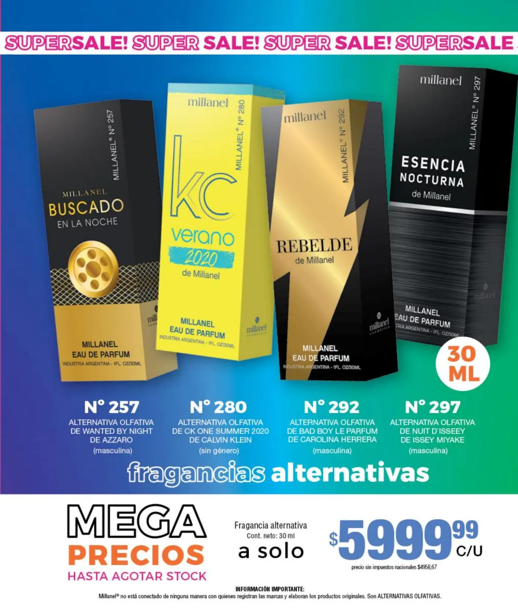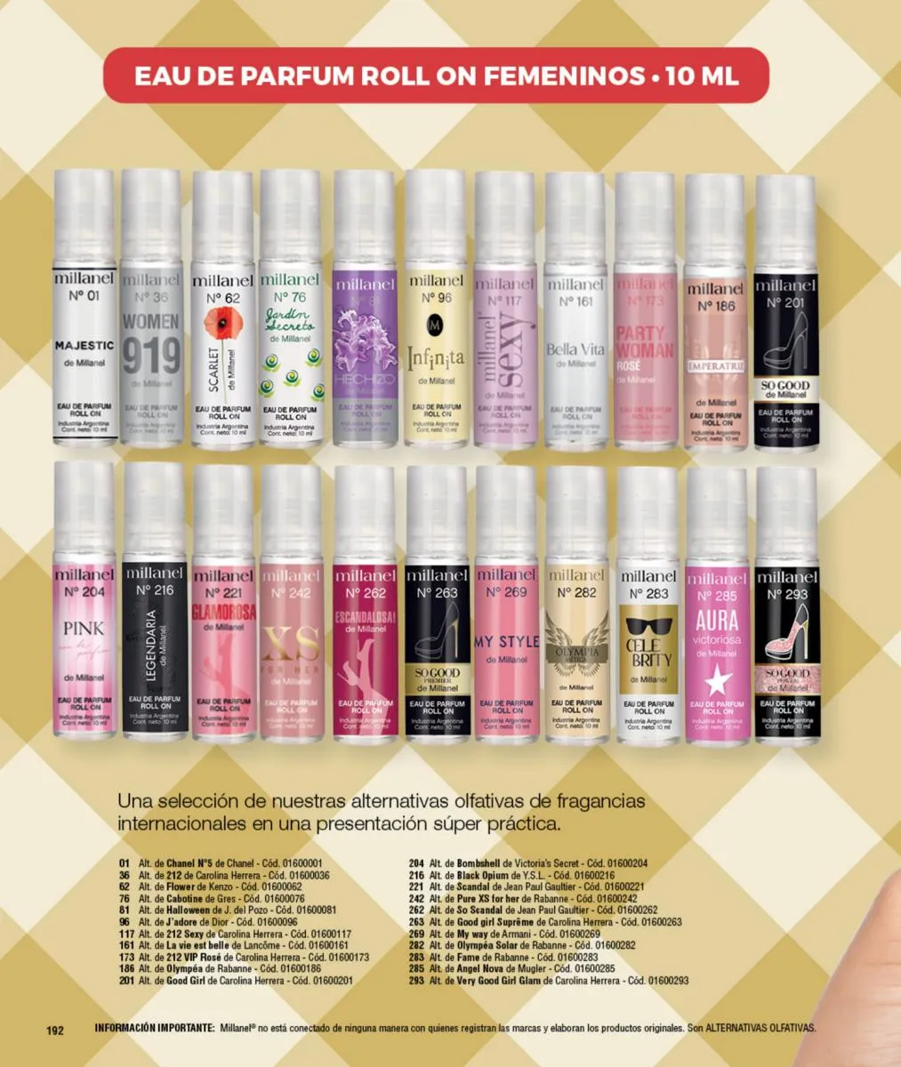 - Para ellas: Irresistible, CH, Sexy, Lady M y Sweet Millanel.
