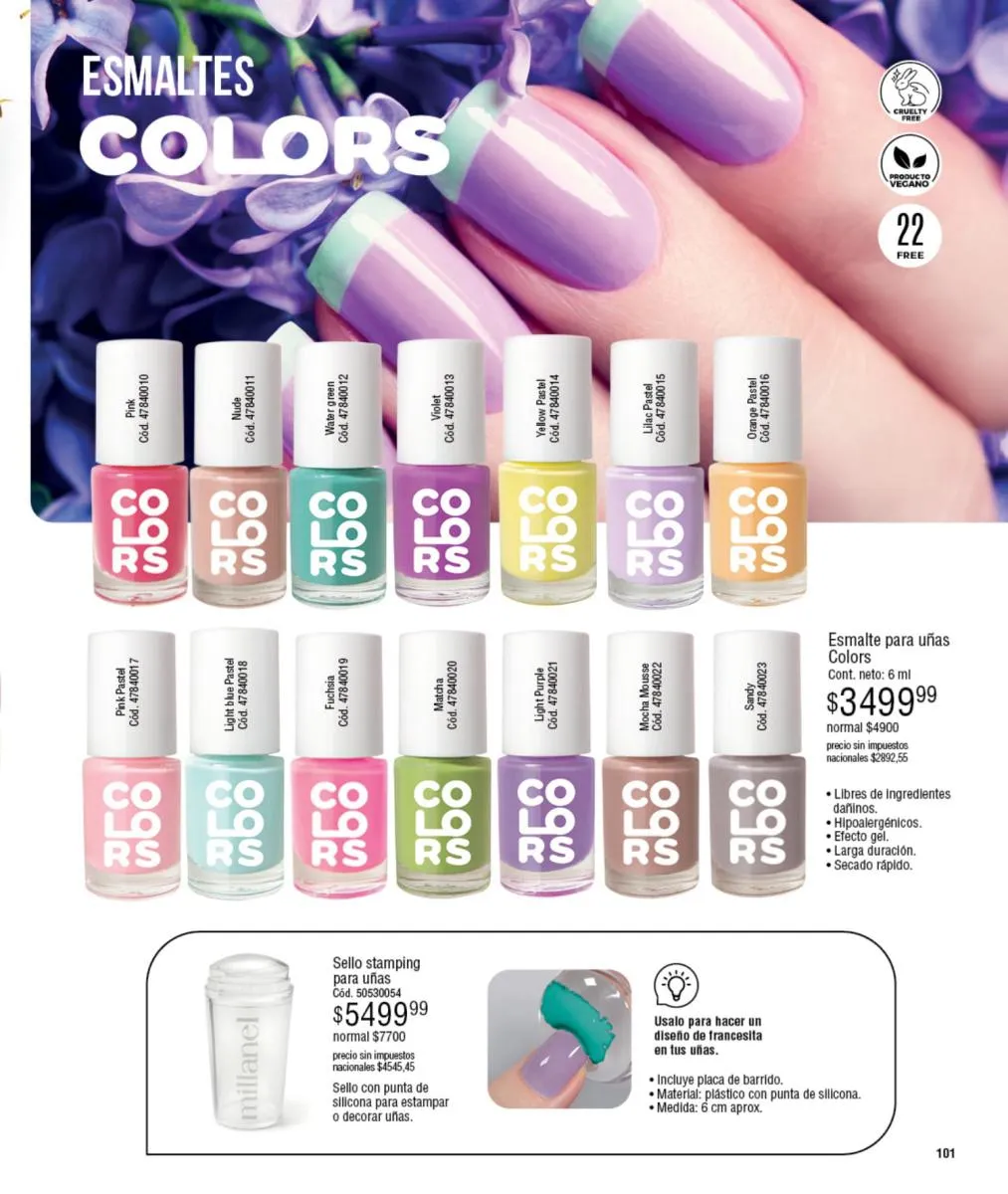 - El más variado Make Up de Millanel, con sus bases, perlas tonalizadoras, sérum para pestañas, delineador líquido, esmaltes y labiales de Colors (pág. 74).