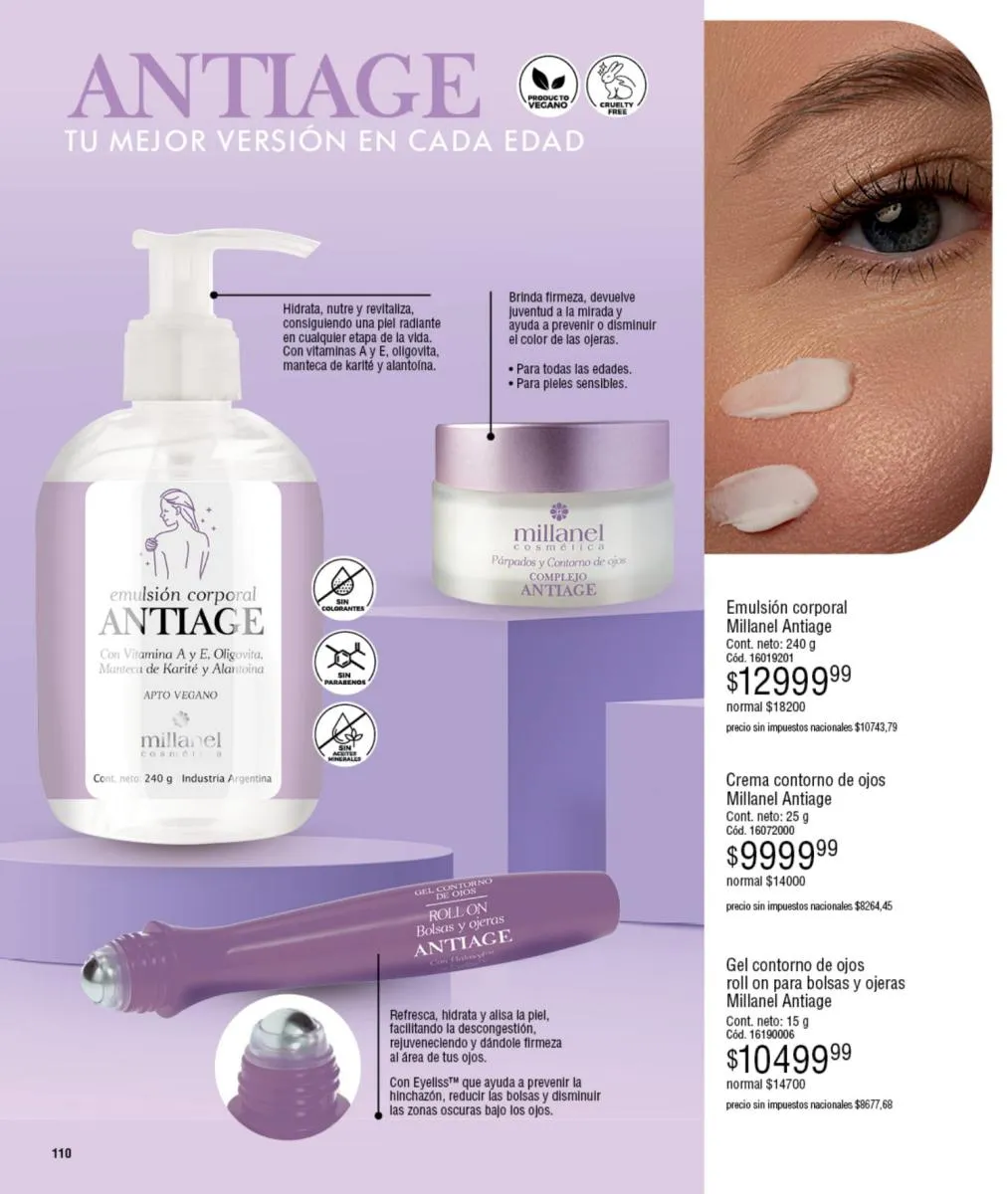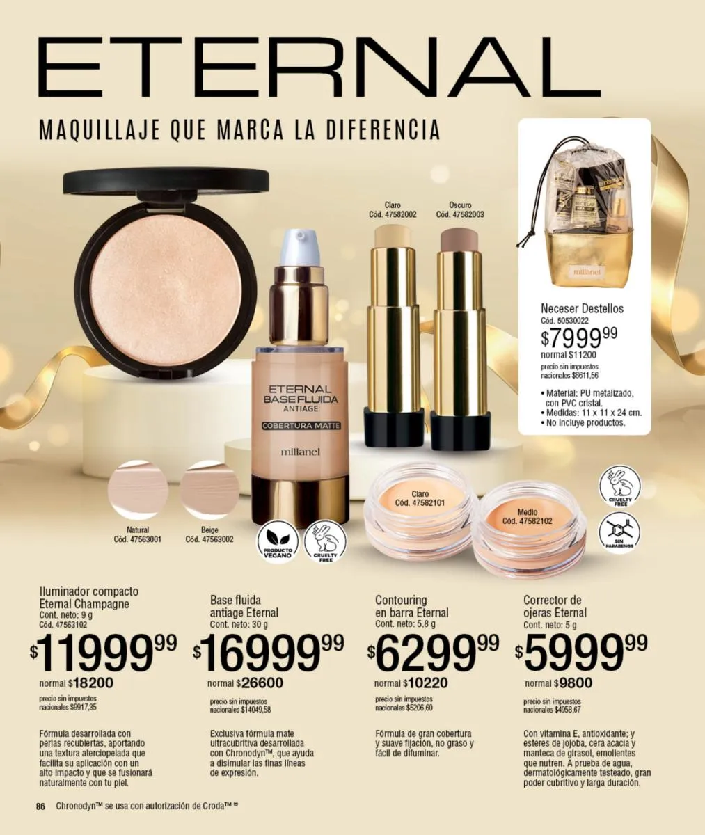 - Tratamientos para el rostro de Eternal (agua micelar o las cremas de día/noche) en la página 96 en adelante.