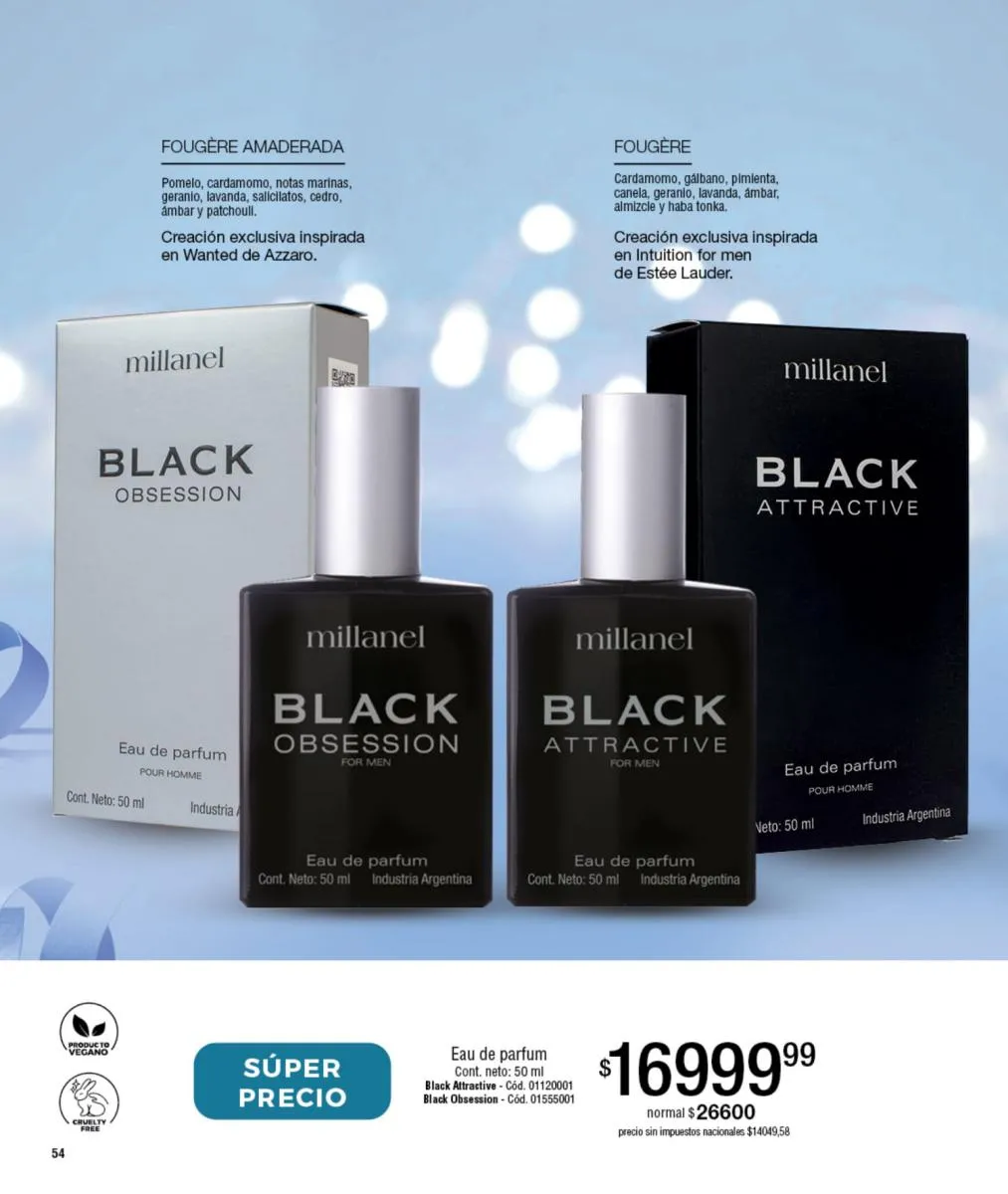 - Para ellos: Fantasma, Desafío, VIP Men, Black Obsession o Escándalo