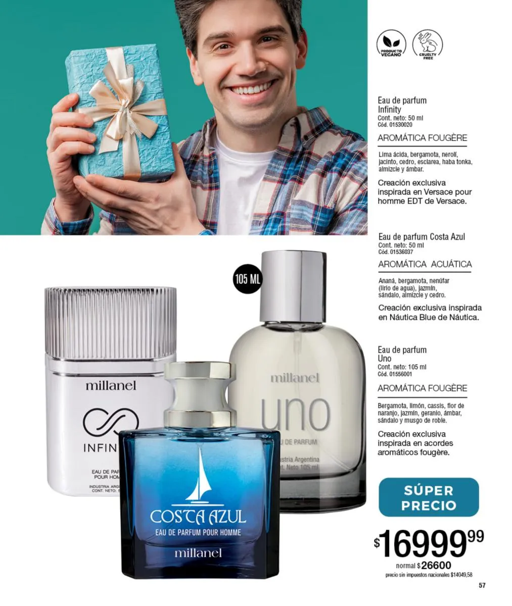 La primera parada en este recorrido por el catálogo Millanel campaña 13 2025 es en la sección de perfumería. Desde las primeras páginas de esta revista podés ver el compendio de oportunidades que Millanel nos ofrece: