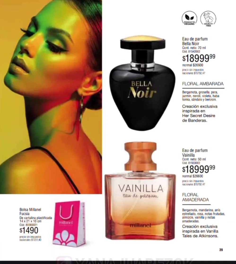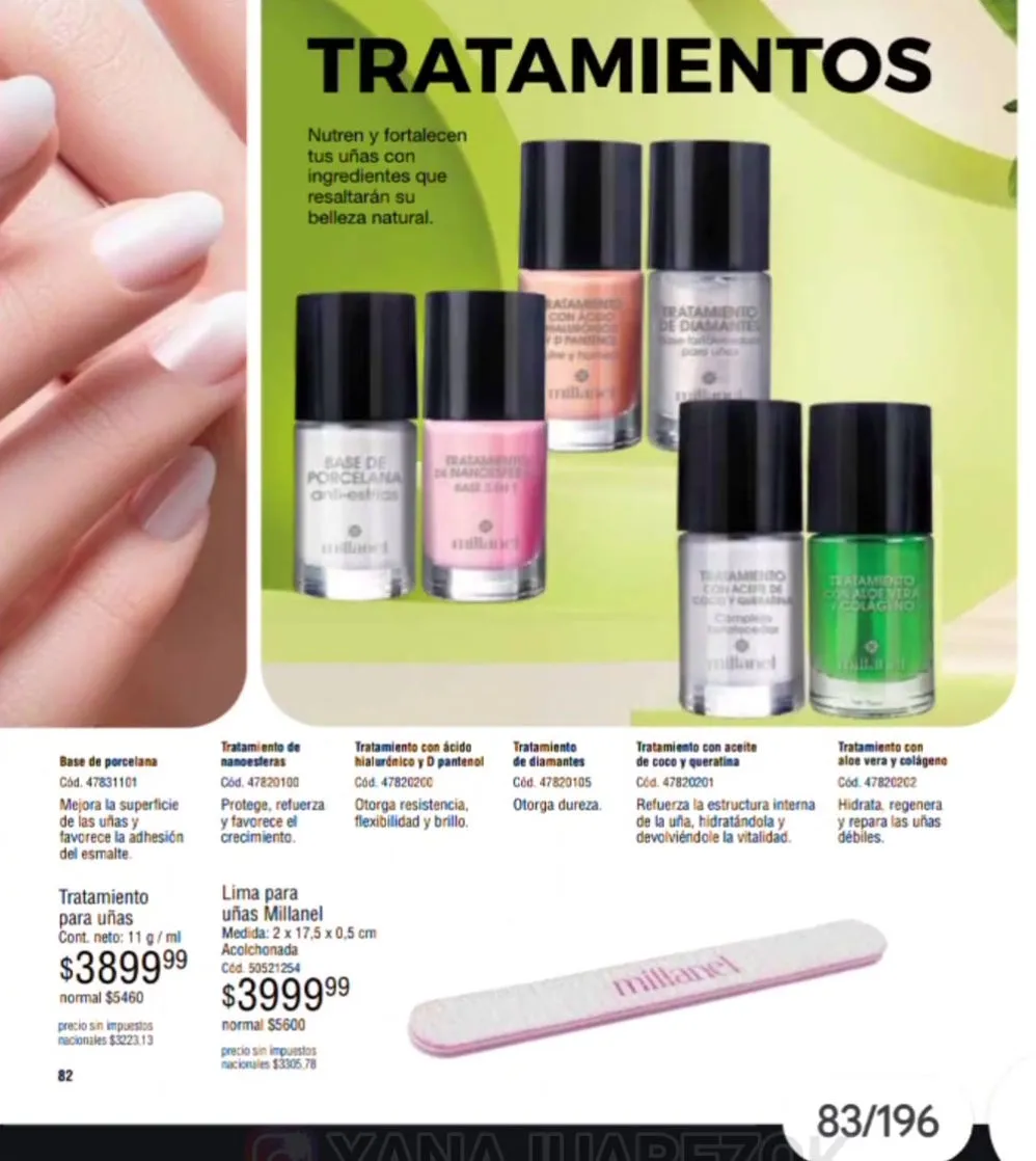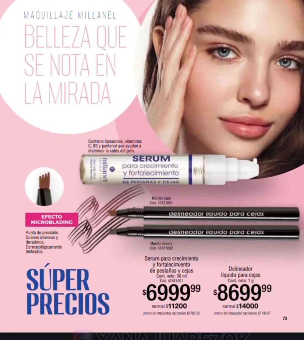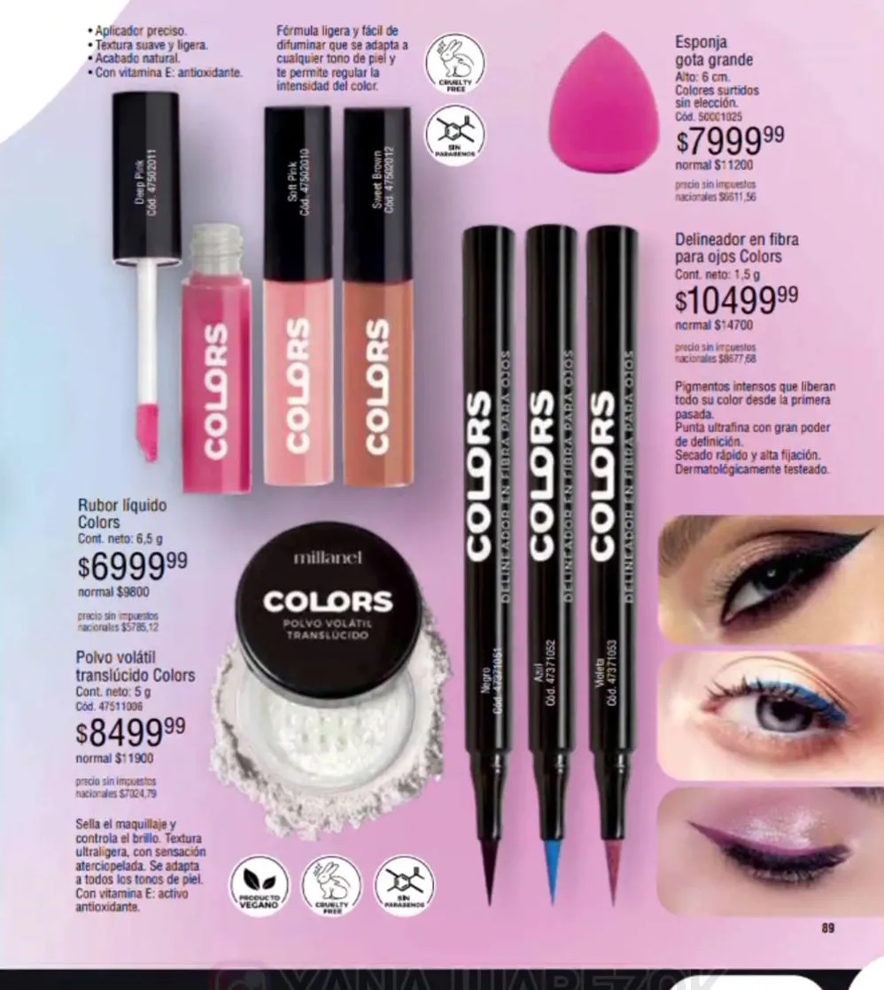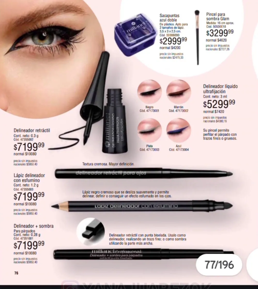 - Con la Máscara para pestañas de la linea Millanel disponible en color negro lograras un acabado perfecto con resistencia al agua, además le dará firmeza y volumen a tus pestañas, 12 g. Pag 7.