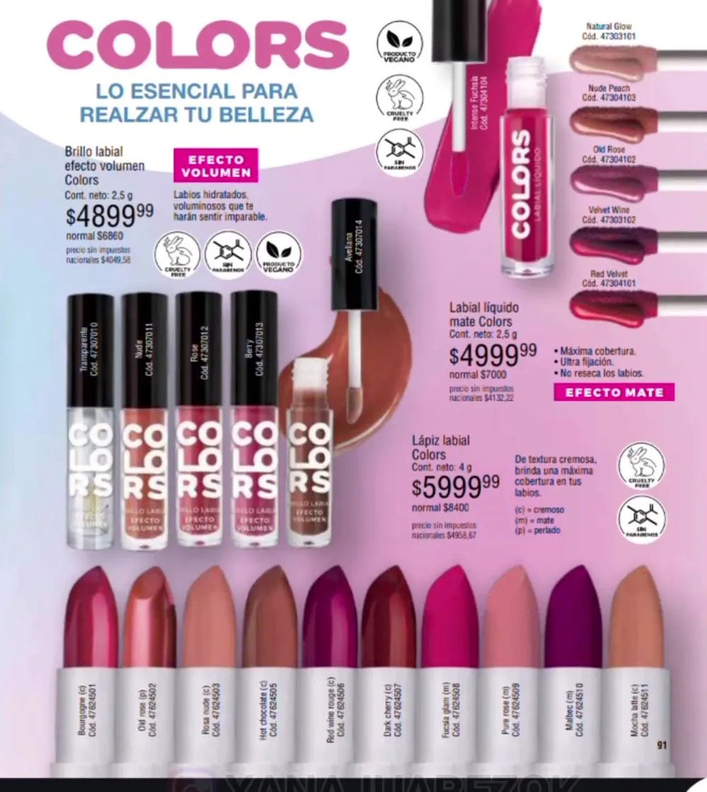 - Labial líquido intransferible en color mate más intenso y de larga duración, disfruta de la gama de colores que traemos para ti, 3 g. Pag 7.