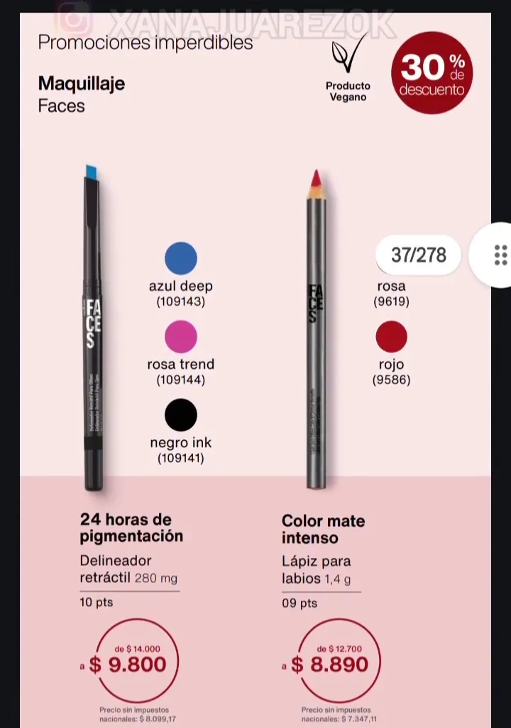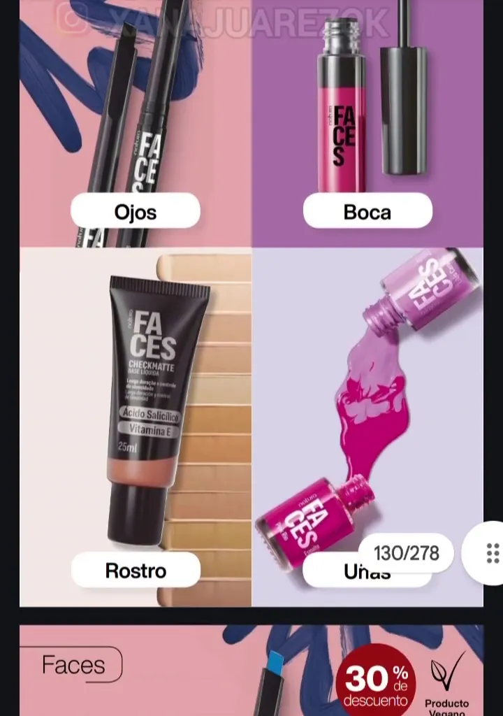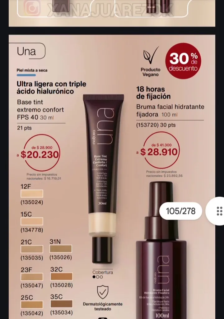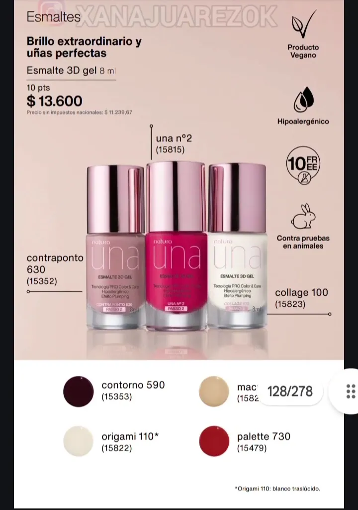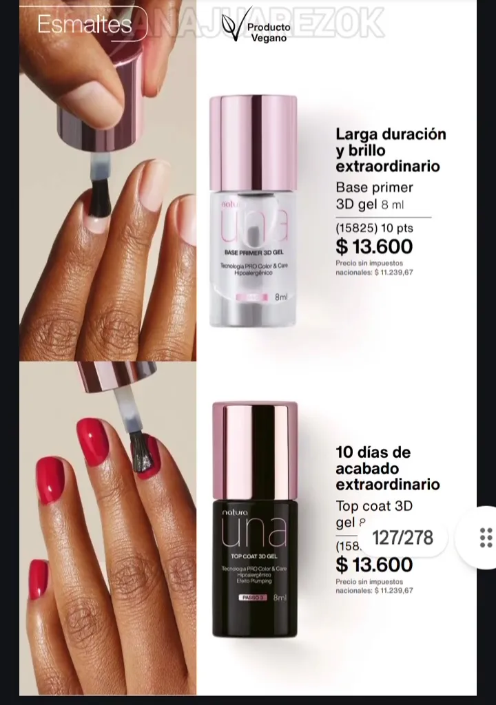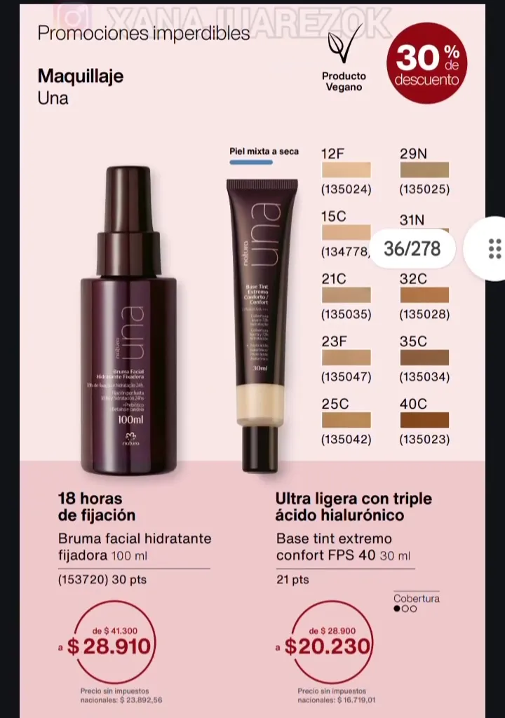 - 30% de descuento en la edición limitada de los productos veganos UNA: delineador, esmalte, top coat matte y el lips & blush en un 30% off.