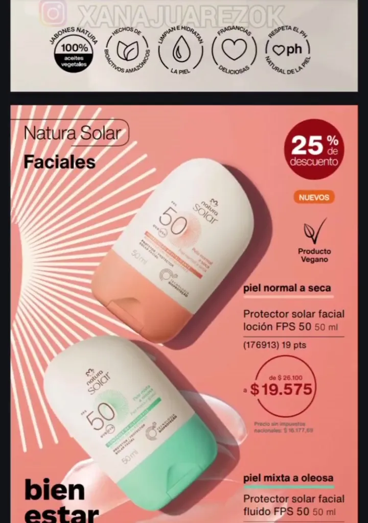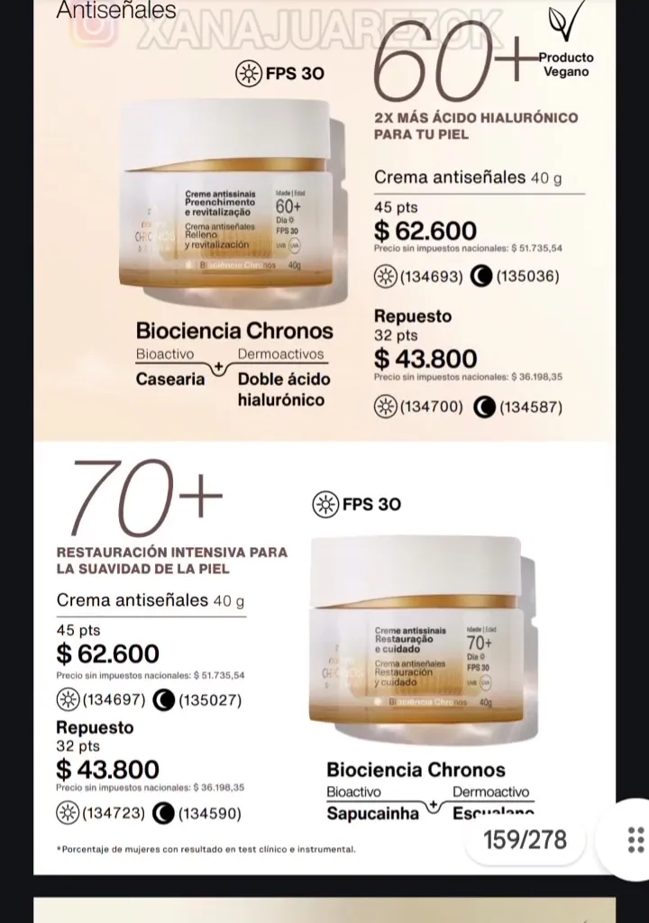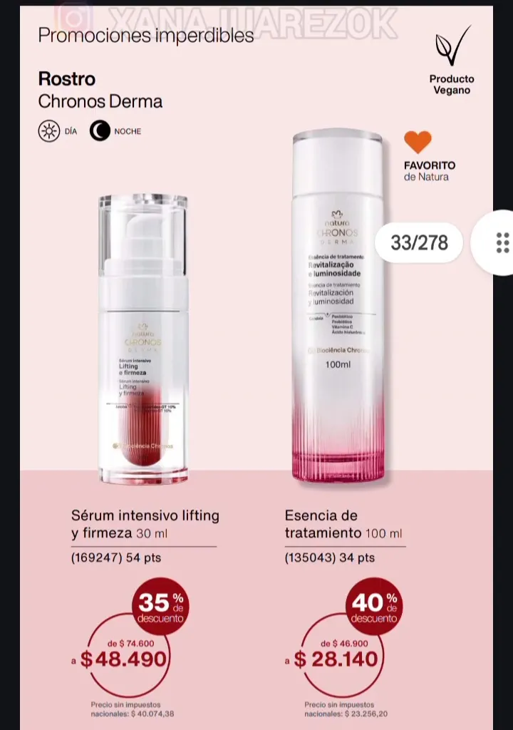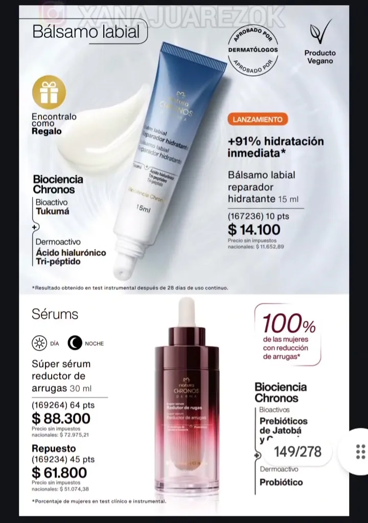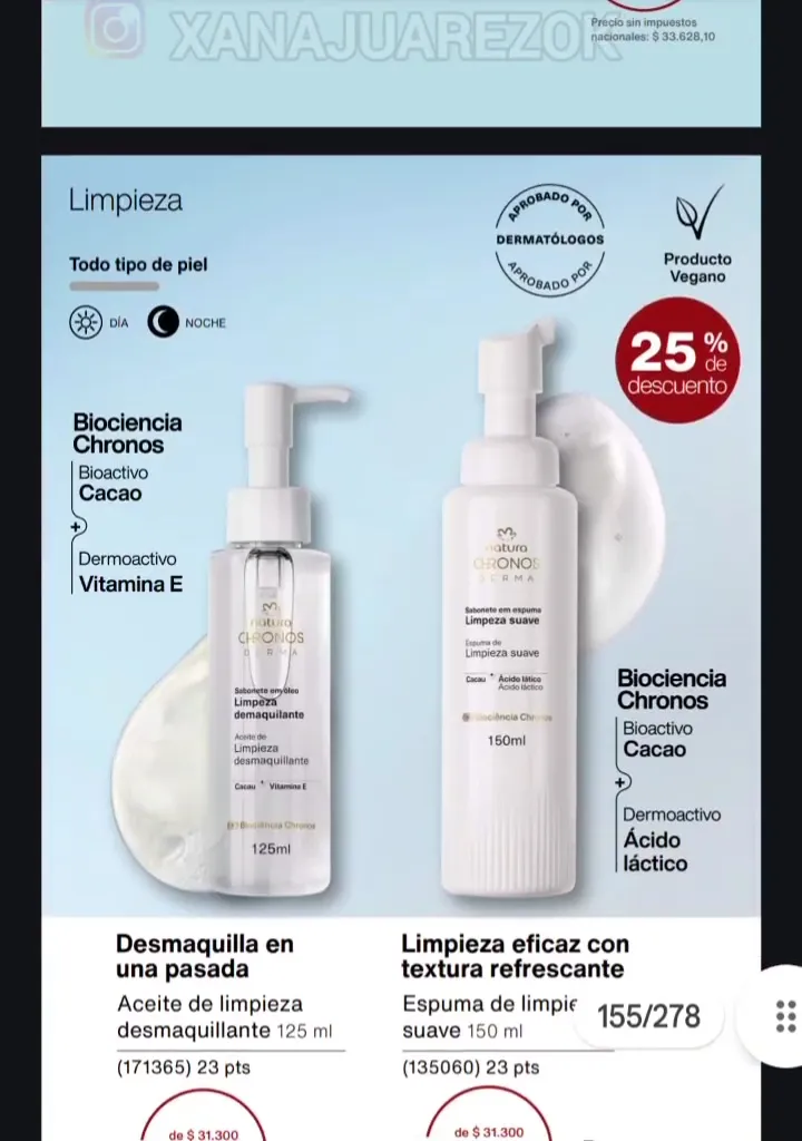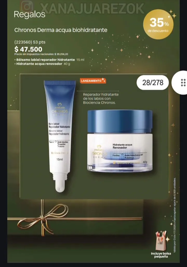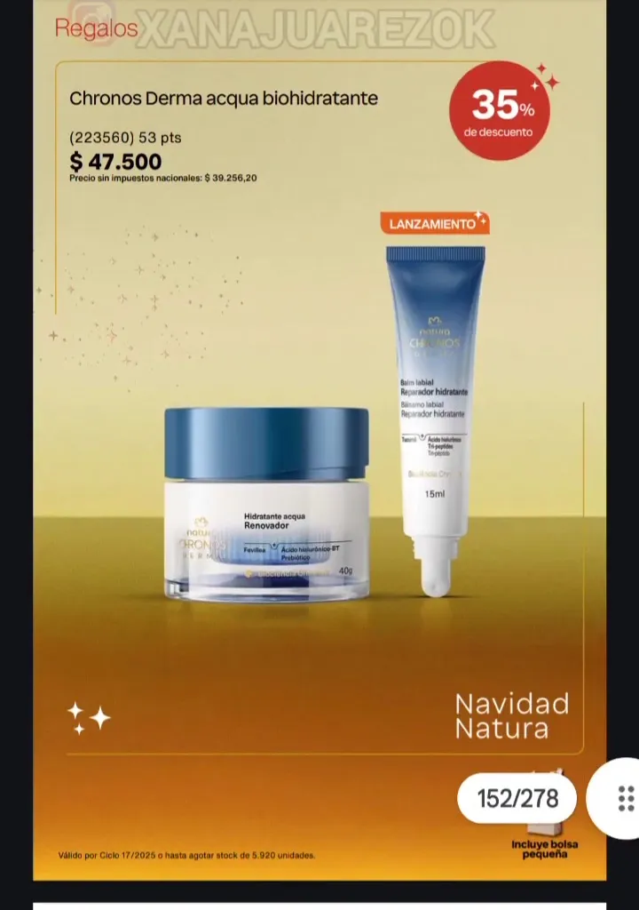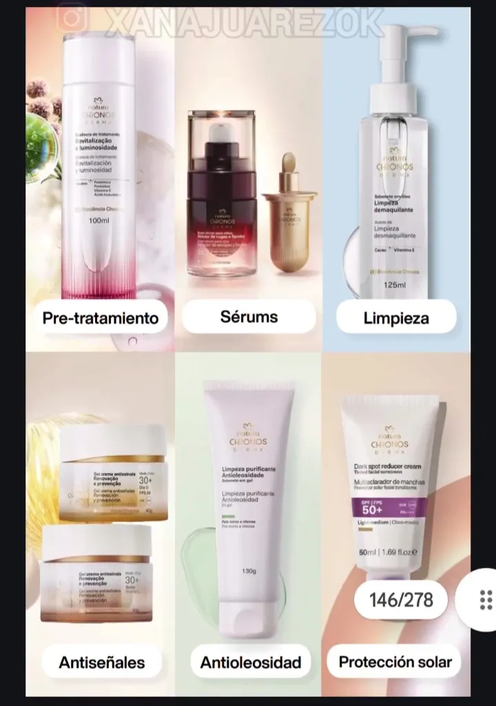 Este mes en esta catálogo Natura 17 2025 Argentina, el cuidado de tu rostro no puede quedar por fuera. La recomendación es revisar todo lo que la línea Chronos tiene para vos en fluido multiprotector, protector hidratante, sérum, gel crema y demás para combatir las arrugas y rejuvenecer tu piel.