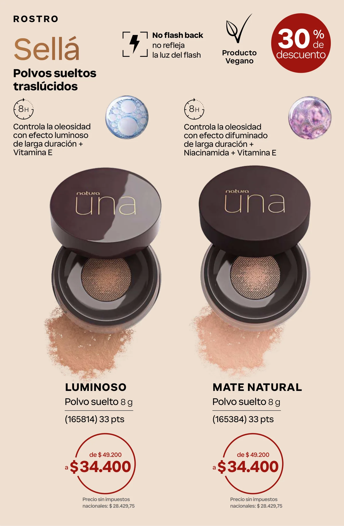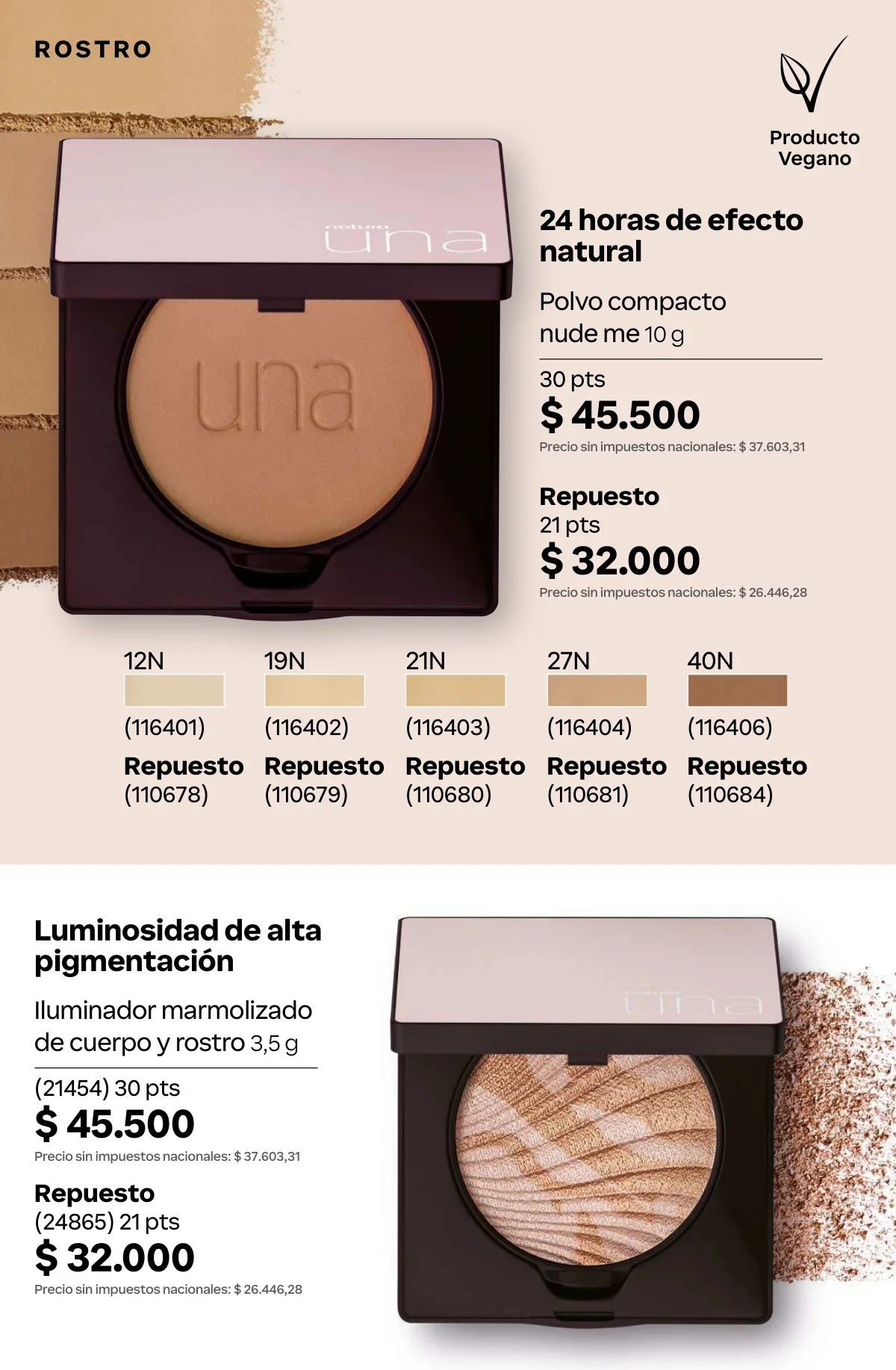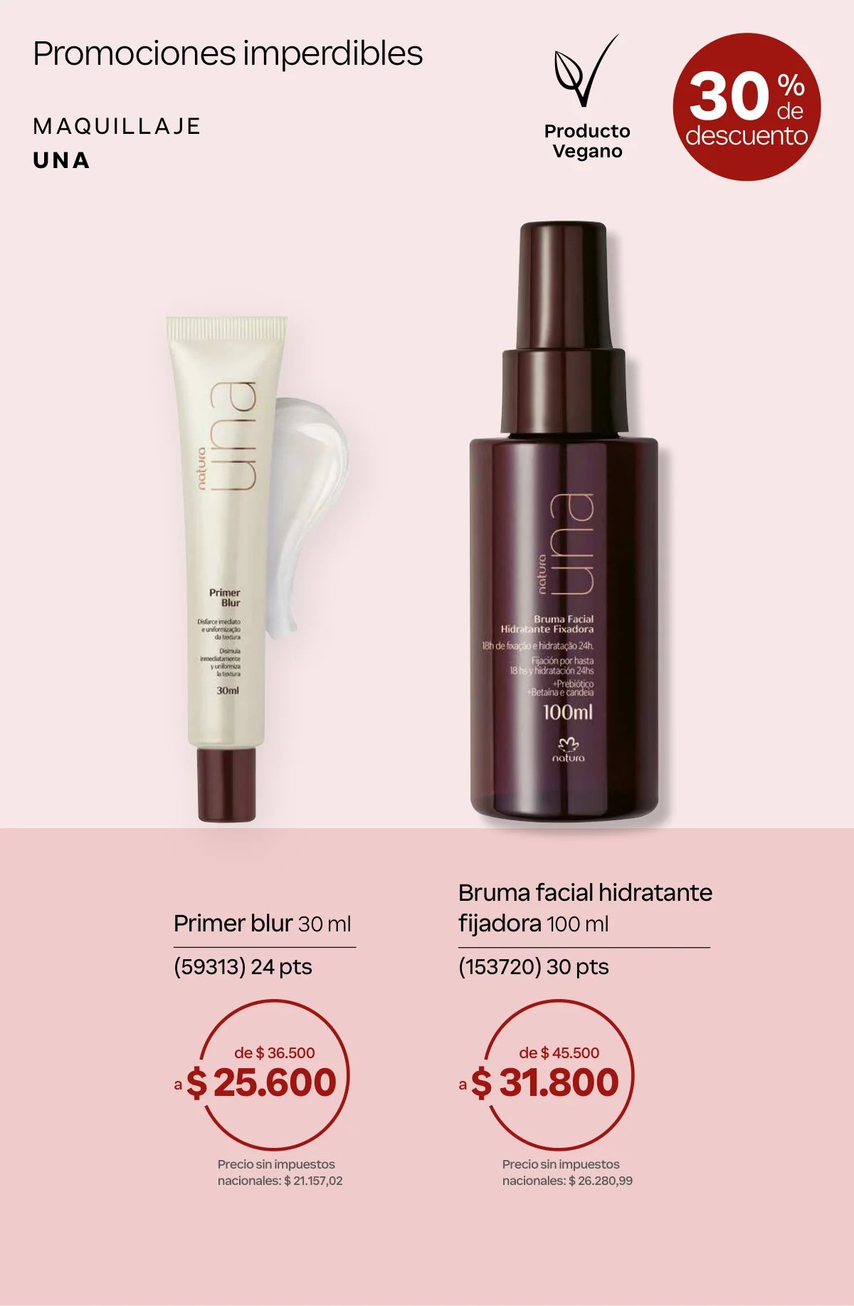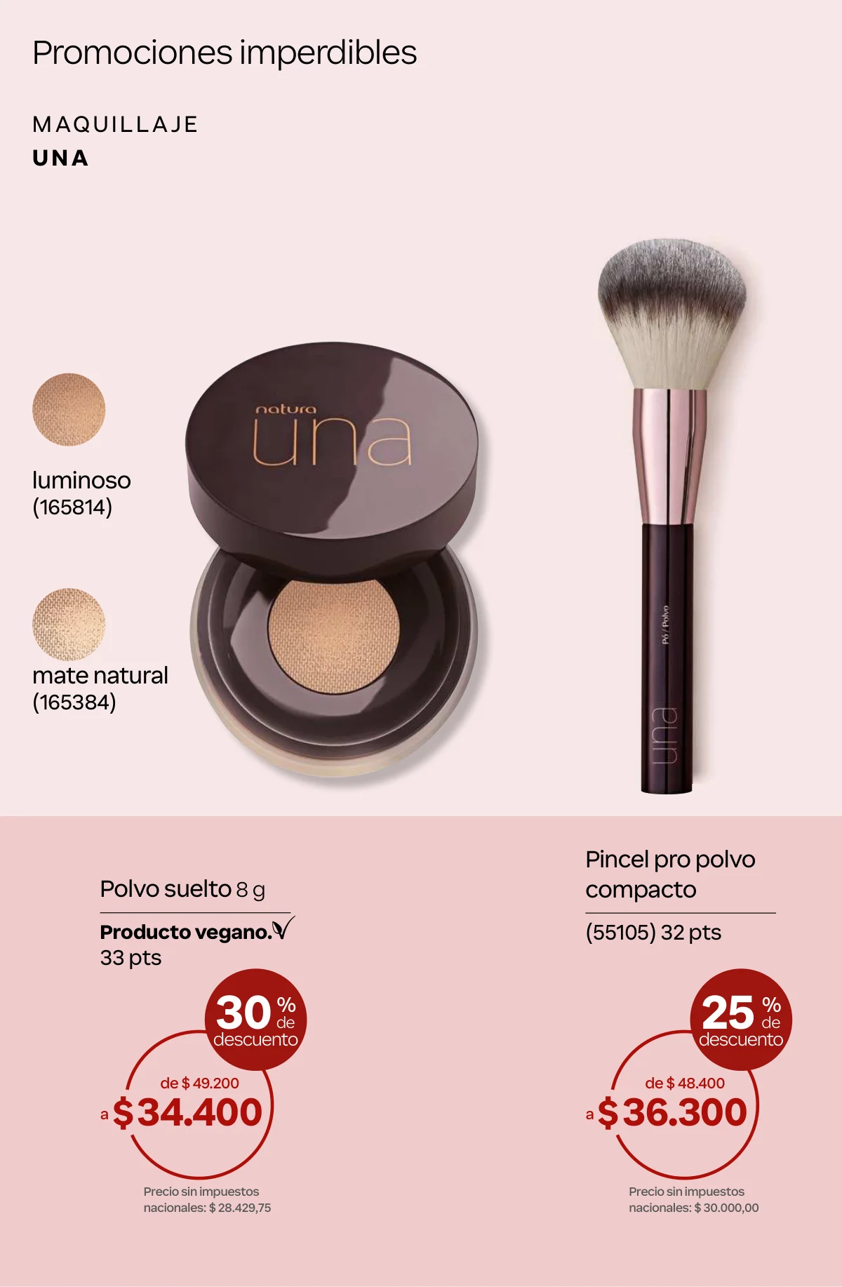 - Labial Una Cushion Multifuncional, disponible en dos tonos de 4,8 mg c/u; su versatilidad le permite ser usado como labial, sombra y rubor, gracias a su aplicador exclusivo con esponja.