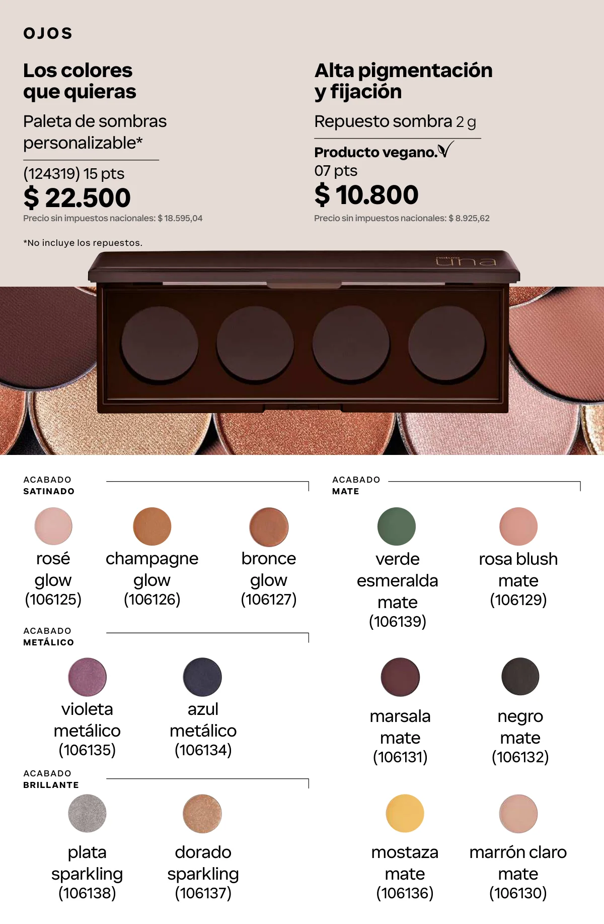 - Trio de sombras rojiza de 3,5 g. alta pigmentación y cobertura adaptable a todo tipo de piel.