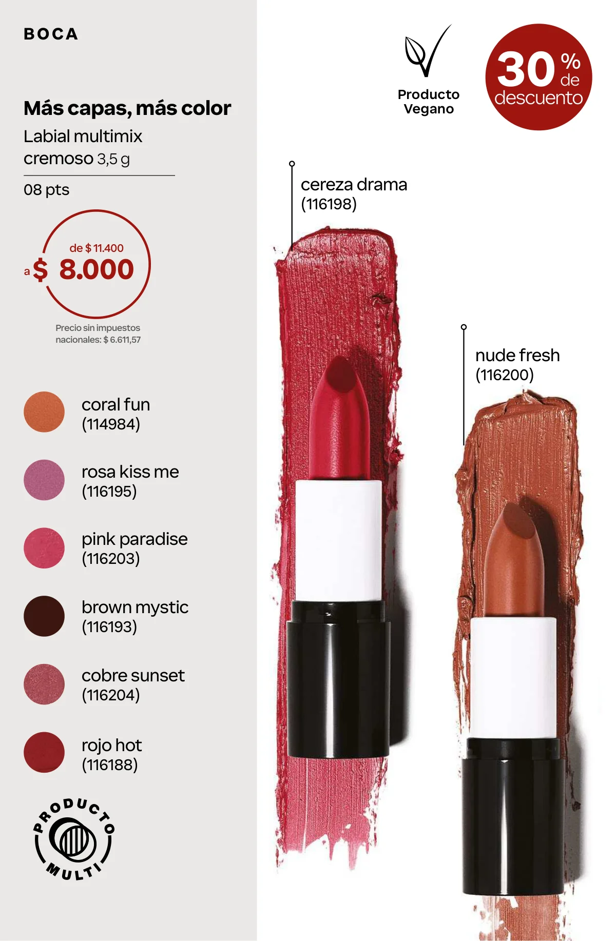 Te invitamos desde el Natura ciclo 6 2026 a disfrutar de la versatilidad y elegancia del rojo, plasmado en cosméticos que aportan una gran pigmentación y garantizan una alta durabilidad.