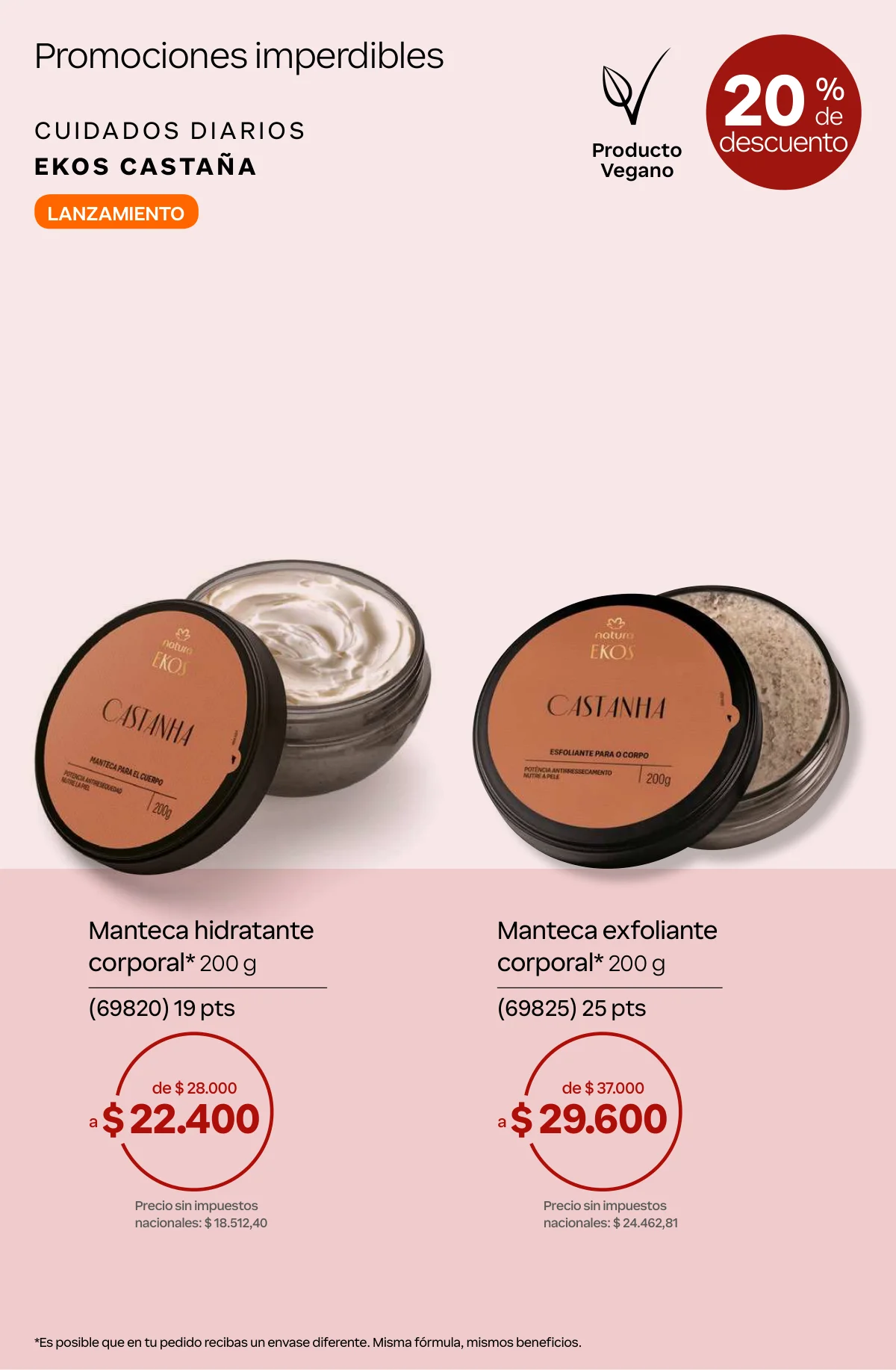 - Pulpa hidratante corporal Ekos Tukumá de 400 ml, en oferta con el 20% de descuento.