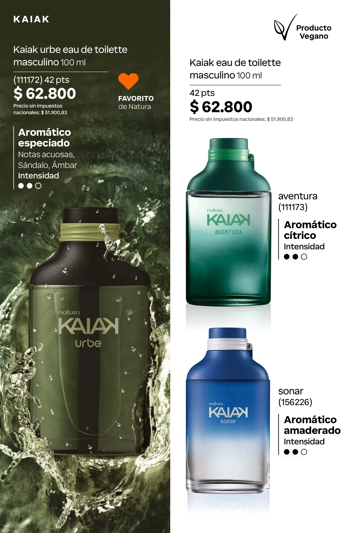 - Spray corporal masculino KaiaK Urbe de 100 ml, fragancia aromático herbal: notas acuosas, ámbar, sándalo, intensidad moderada.