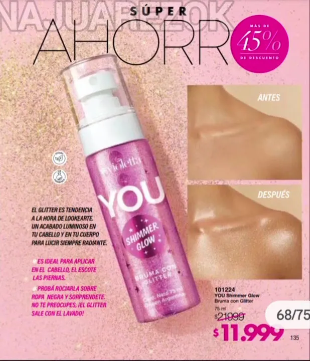 Consiente tu cuerpo con lo mejor del catálogo Violetta campaña 1 2026 Argentina, donde traemos para ti gran variedad de productos para el cuidado de tu piel, dejándola suave y tersa logrando un aclarado de manchas y reducción de esas molestas líneas de expresión.