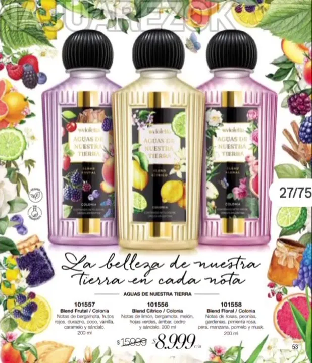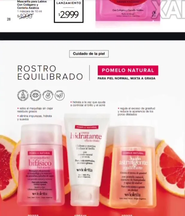 - Frutos rojos Loción tonificante hidratante. logra refrescar y nivelar el pH de la piel, con Provitamina B5 evitando el daño de las agresiones externas, de 110ml. Pag 35.