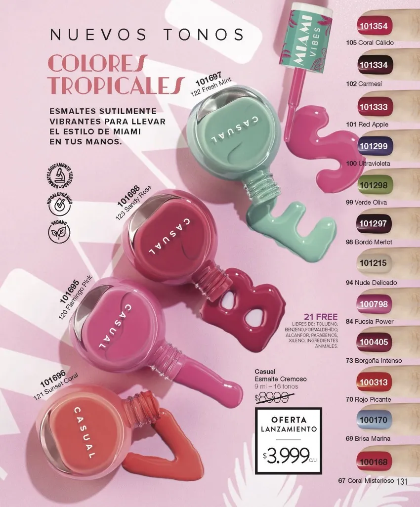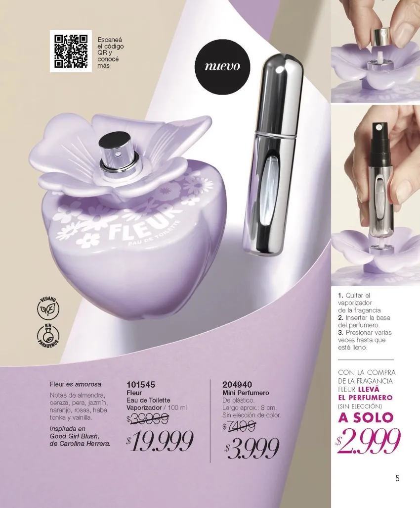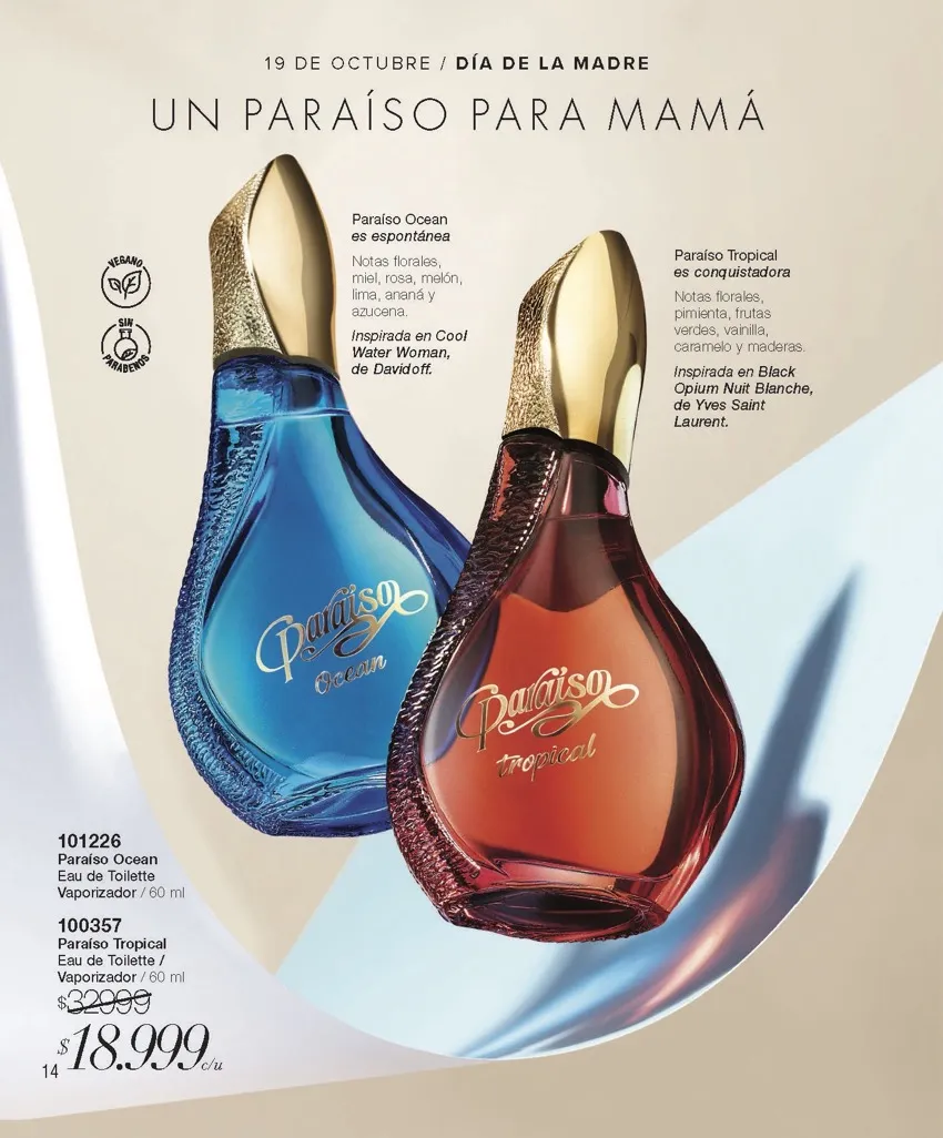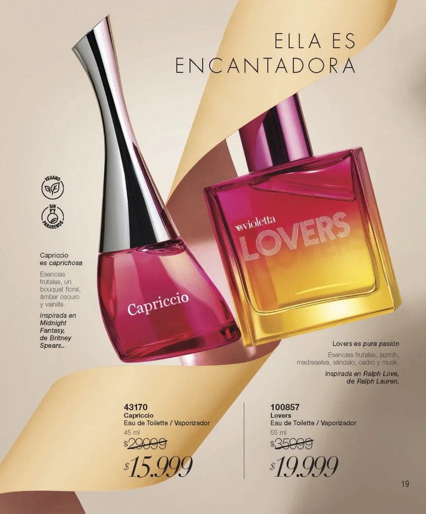 - Eau de toilette vaporizador de 50 ml, en su presentación Magic Love, creada con aromas frutales con acordes de vainilla. Pag 10.