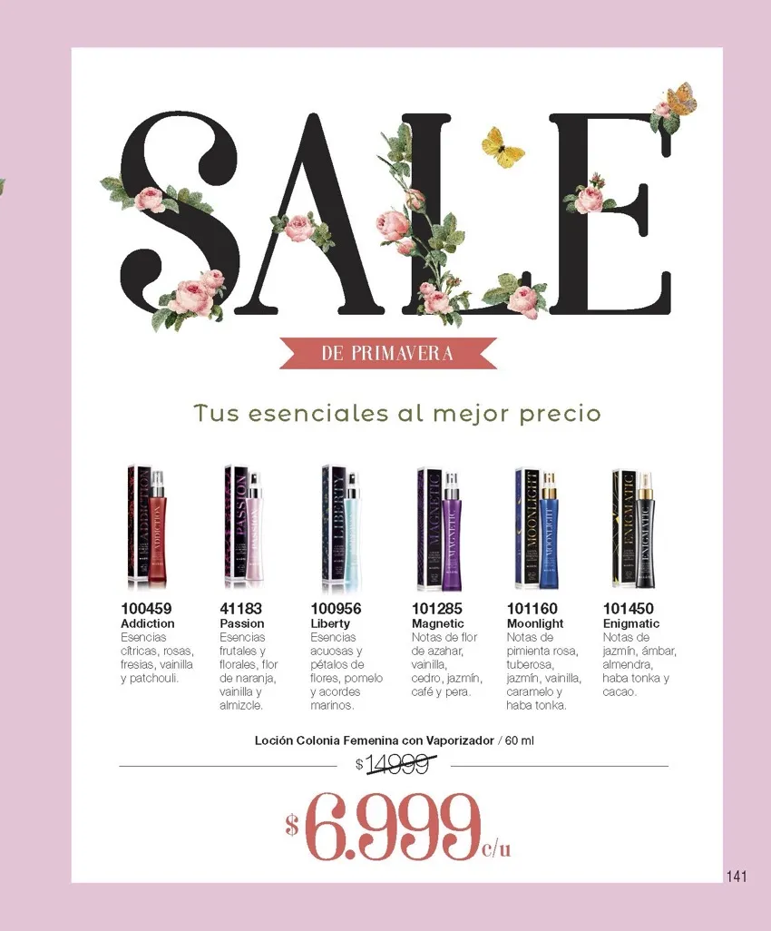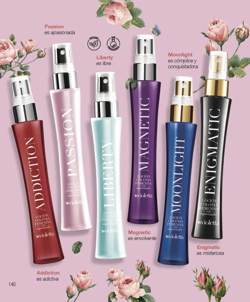 - Loción Colonia femenina con vaporizador, es sus múltiples presentaciones: Seduction, Addiction, Passion, Romantic y Liberty. Elige la de tu preferencia y llena de vida tu rutina. Pag 12.