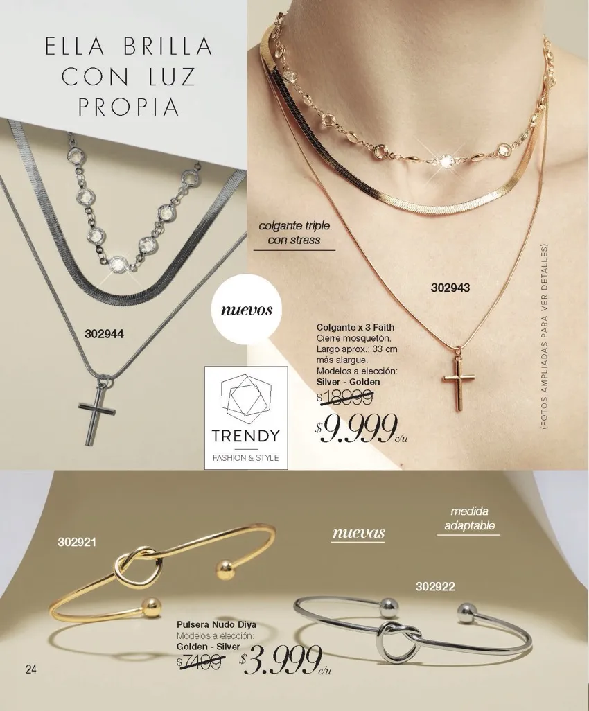 - Anillo regulable Ashley bañado en dorado, con diseño trenzado, fabricado en símil Strass. Pag 29.