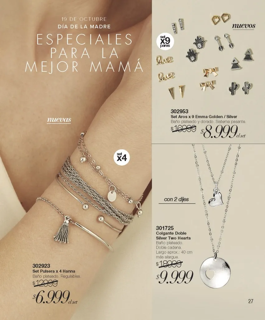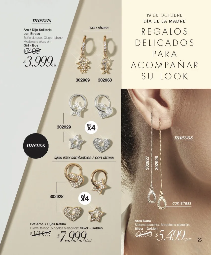 - Aros argolla doble Emily bañado en dorado, diámetro aproximado: 2 cm. Pag 29.
