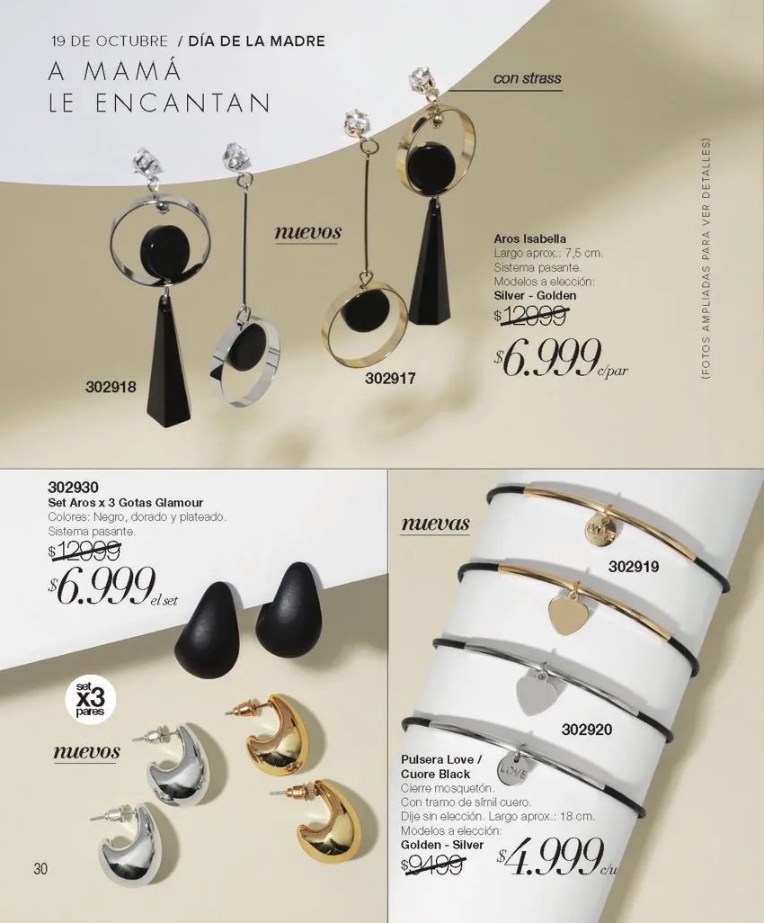 - Aros Samantha, bañado dorado, largo aproximado 8 cm. Pag 28.