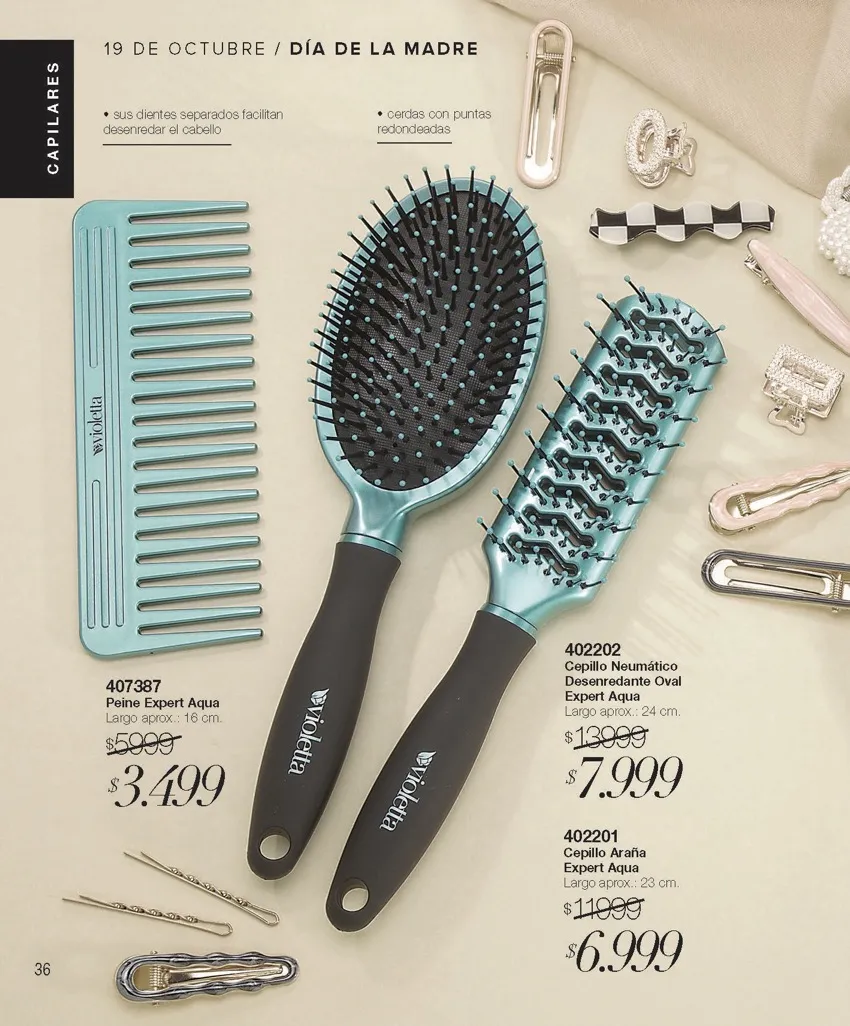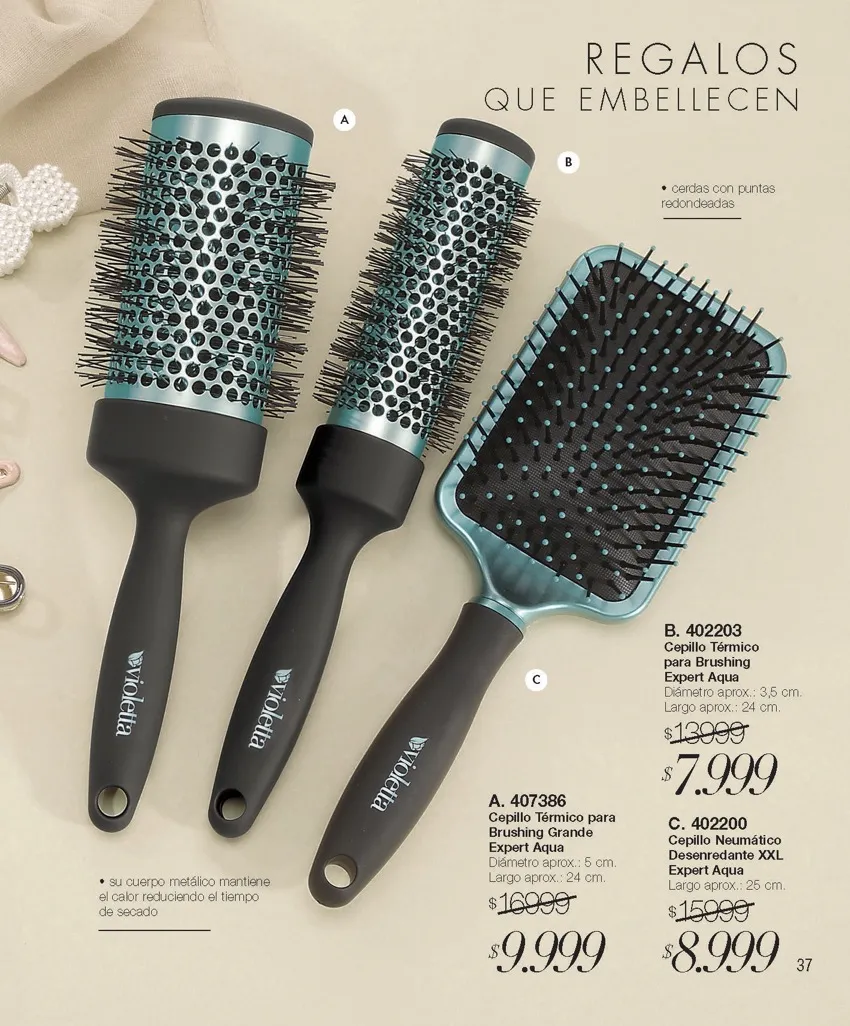 - Cepillo neumático desenredante XXL Expert Zafiro, medidas aproximadas: Largo 25 cm. Pag 32.