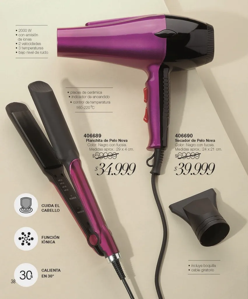 - Cepillo térmico grande para Brushing Expert Zafiro, medidas aproximadas: Diámetro 3,5 cm, largo 24,5 cm. Pag 32.