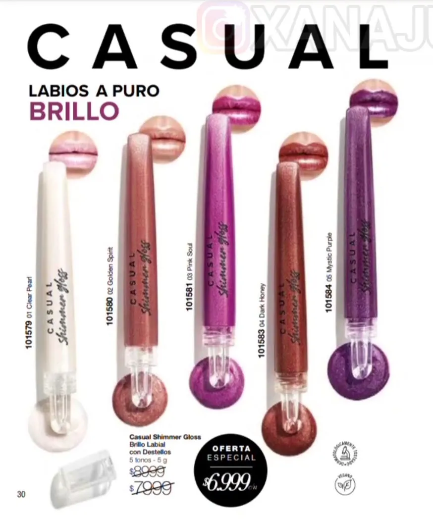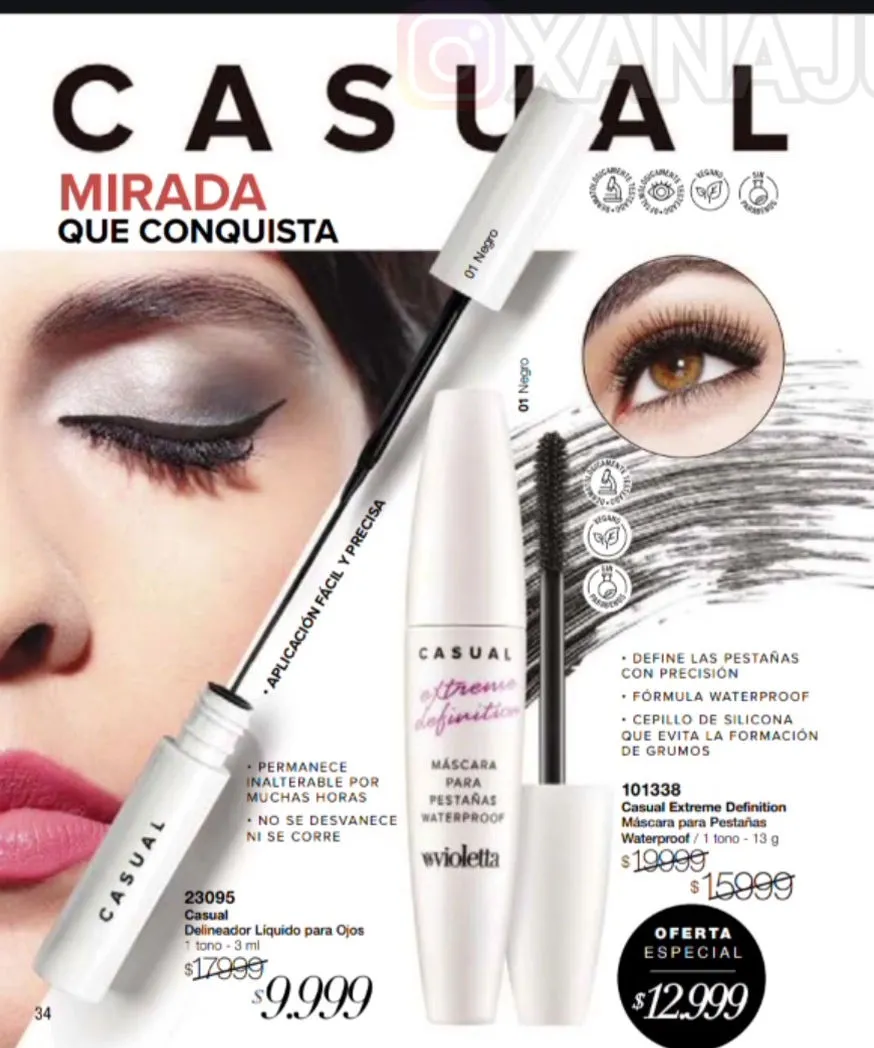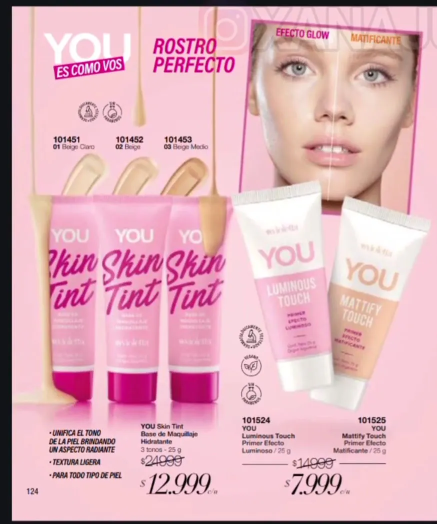 - Base de maquillaje fluida Casual matte 30 g, ideal para cualquier tono de piel, disponible en 5 tonos. Pag 7.