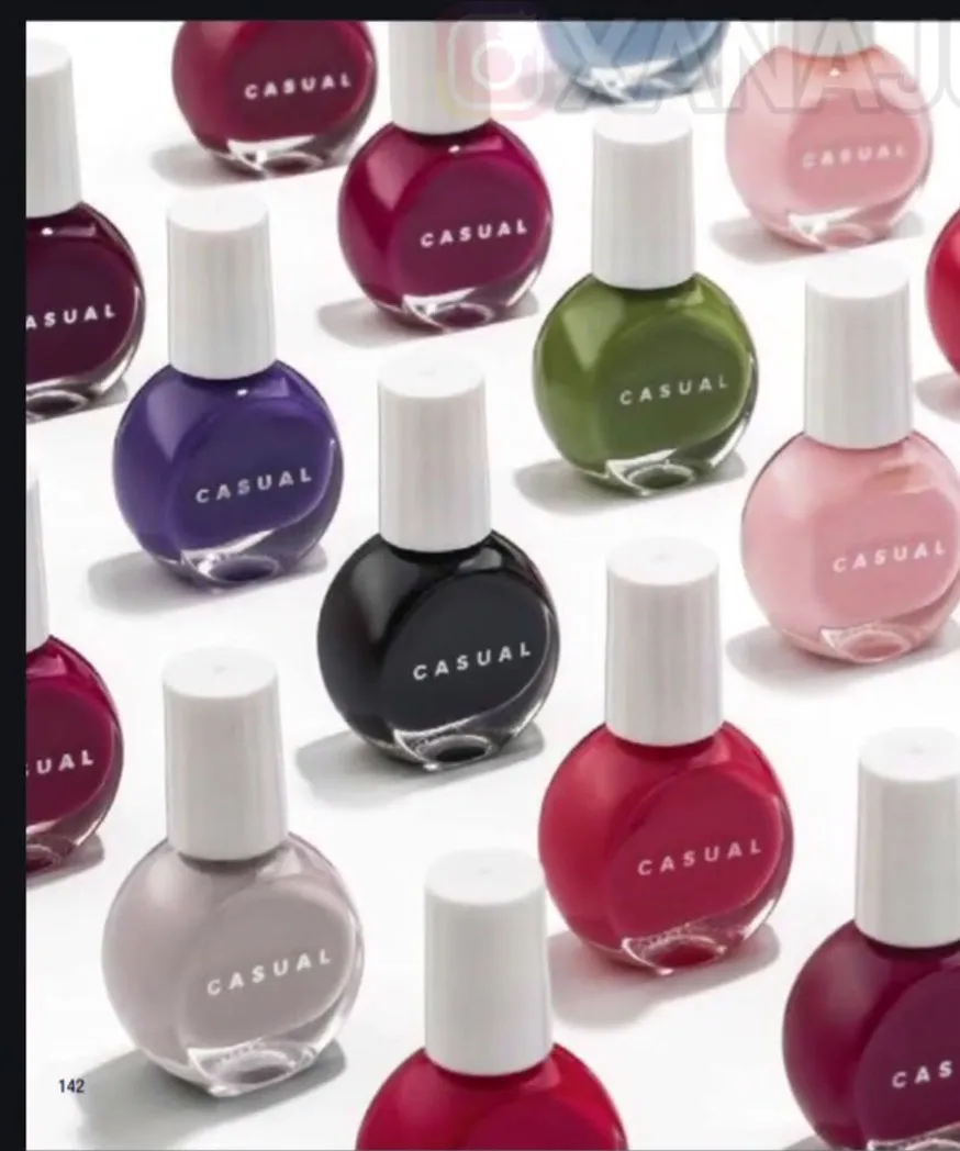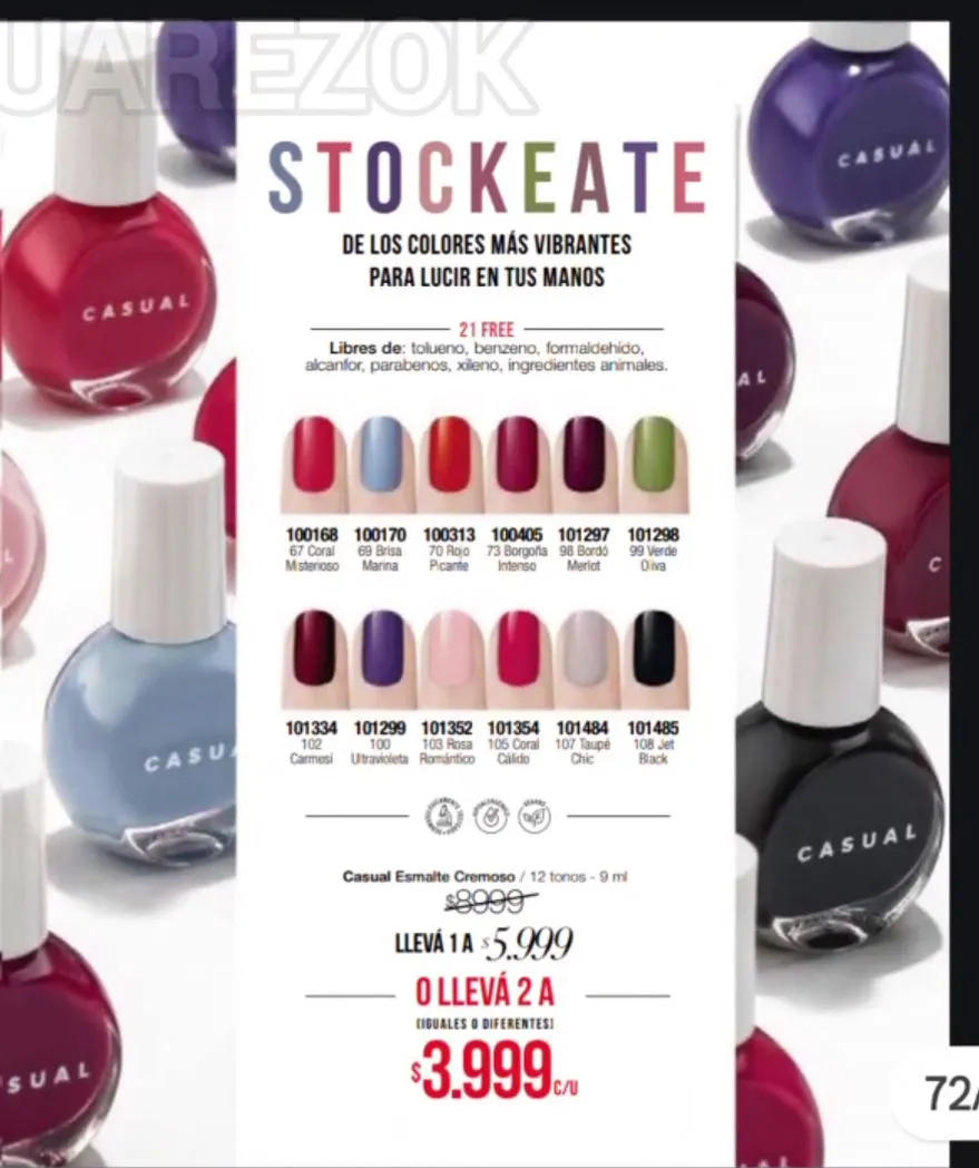 - Esmalte Casual con textura Cremosa 9ml, disponible en 17 tonos surtidos. Pag 15.