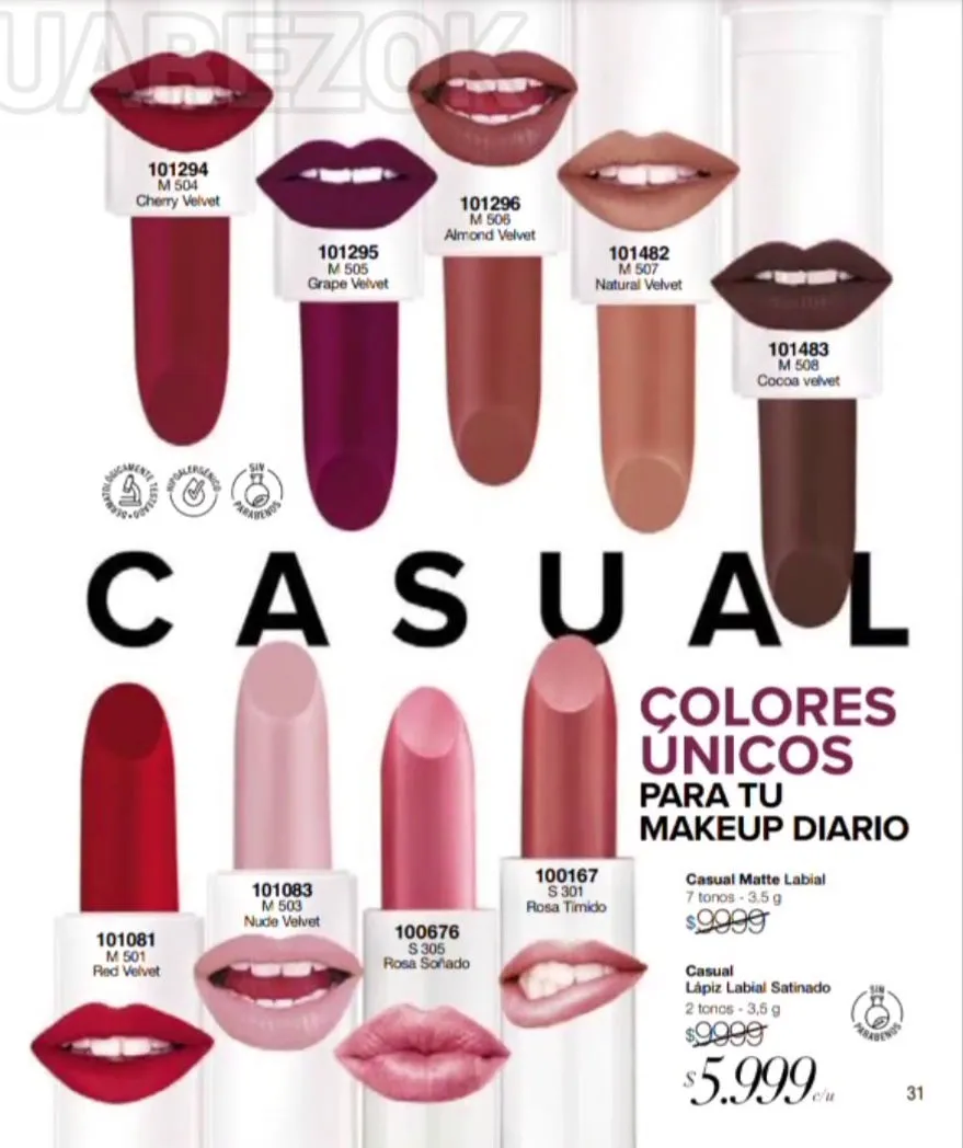 - Labial Casual matte, 3.5 g disponible en 3 tonos surtidos, lo encontrarás en la Pág. 3.