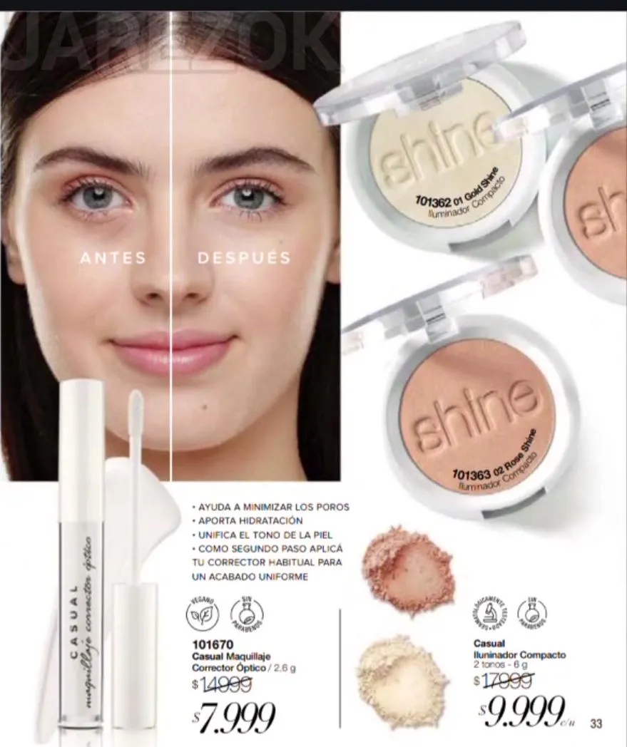 - Aporta un toque de luz y cubre esas molestas imperfecciones con Maquillaje corrector Casual de 4g, disponible en 4 tonos. Pag 11.