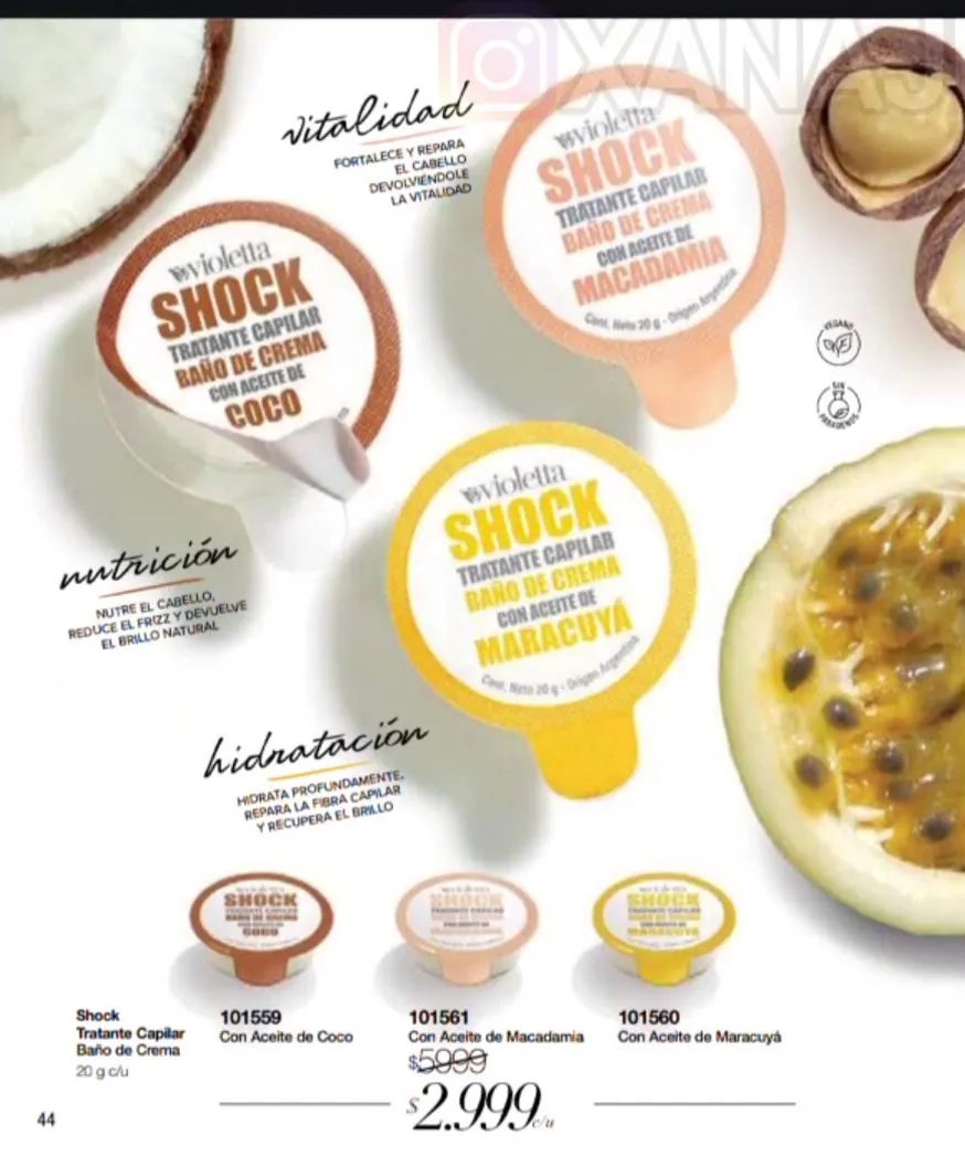En el catálogo Violetta 4 2026 Argentina nos gusta cuidar tu piel con todos nuestros productos. Nutre y repara tu piel y tu cabello con aceite de argán, oliva, almendras, girasol y maíz con aroma natural.