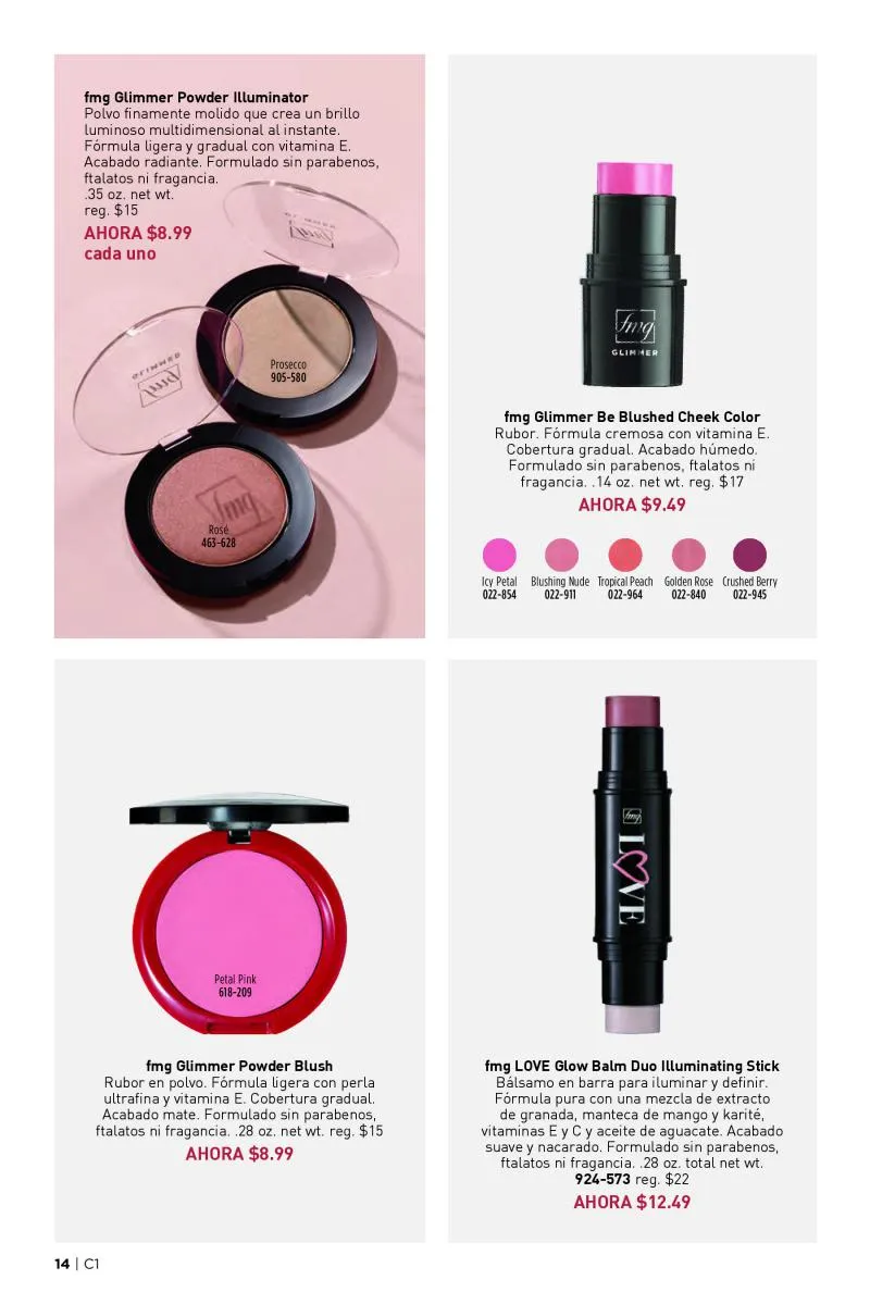 La campaña también pone el foco en el color con una selección de rubores e iluminadores pensados para todos los estilos y ocasiones. El fmg Glimmer Be Blushed Cheek Color, en formato de barra cremosa con vitamina E, brinda un toque de color suave y modulable. Por su parte, los polvos Glimmer Powder Illuminator y Glimmer Powder Blush entregan acabados radiantes y mate, respectivamente, en tonos versátiles como Rosé, Prosecco, Petal Pink y Pink Passion.
