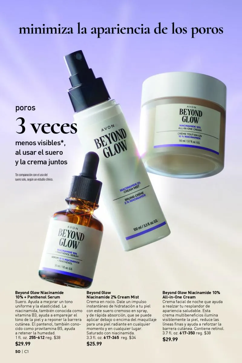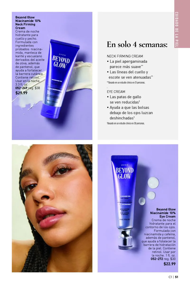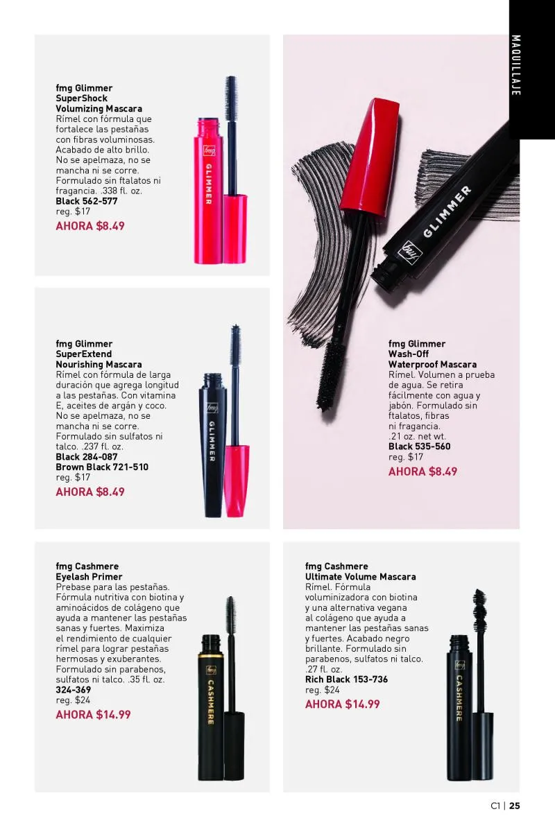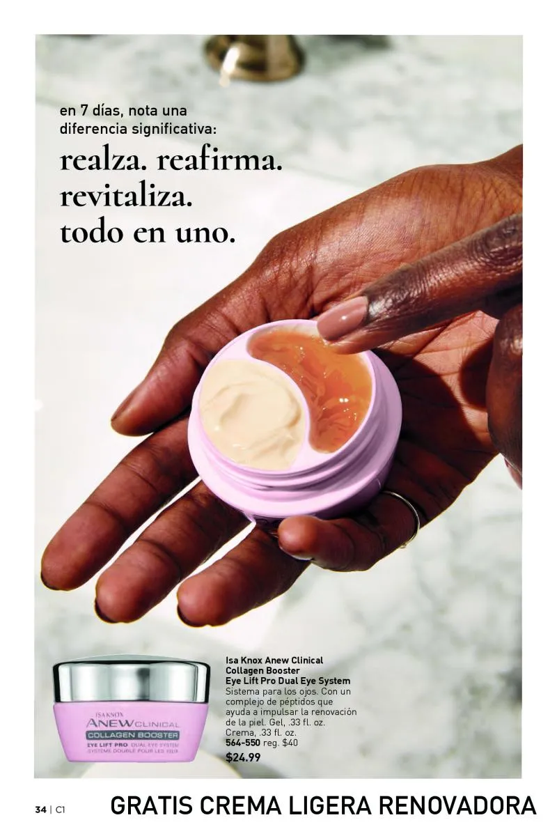 El catálogo Avon 1 2026 Estados Unidos también destaca productos que elevan el maquillaje desde la preparación de la piel. Las pre-bases de la línea fmg Cashmere, tanto para el rostro, los ojos como para el contorno inferior, se posicionan como esenciales. Estas fórmulas avanzadas están enriquecidas con ingredientes como cafeína, péptidos, ácido hialurónico y colágeno vegano, pensadas para suavizar líneas de expresión, reducir signos de fatiga y crear una base perfecta para el maquillaje.