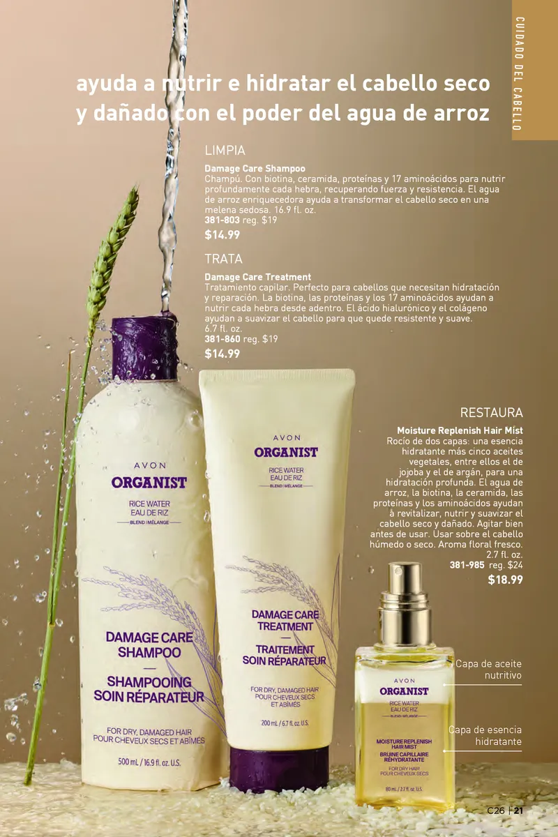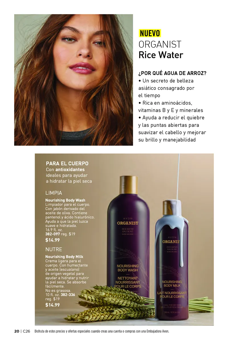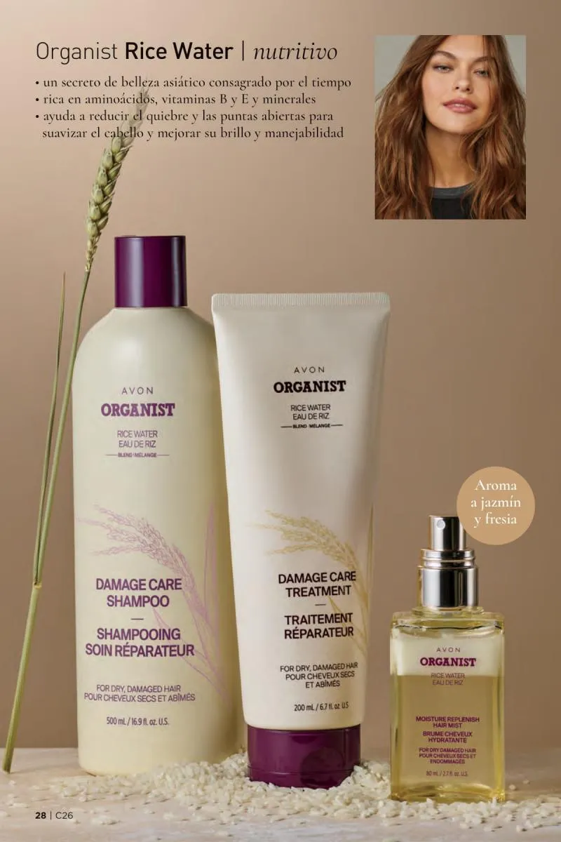 En esta temporada, el catálogo Avon campaña 26 2025 USA pdf se enfoca en un objetivo claro: restaurar la salud del cabello y la piel utilizando fórmulas innovadoras que combinan tradición y ciencia. Uno de los lanzamientos más esperados es la línea Organist Rice Water, una colección inspirada en un antiguo secreto de belleza asiático: el agua de arroz. Rica en aminoácidos, vitaminas del complejo B y minerales, esta línea está pensada para nutrir profundamente cada hebra de cabello y devolverle su vitalidad natural.