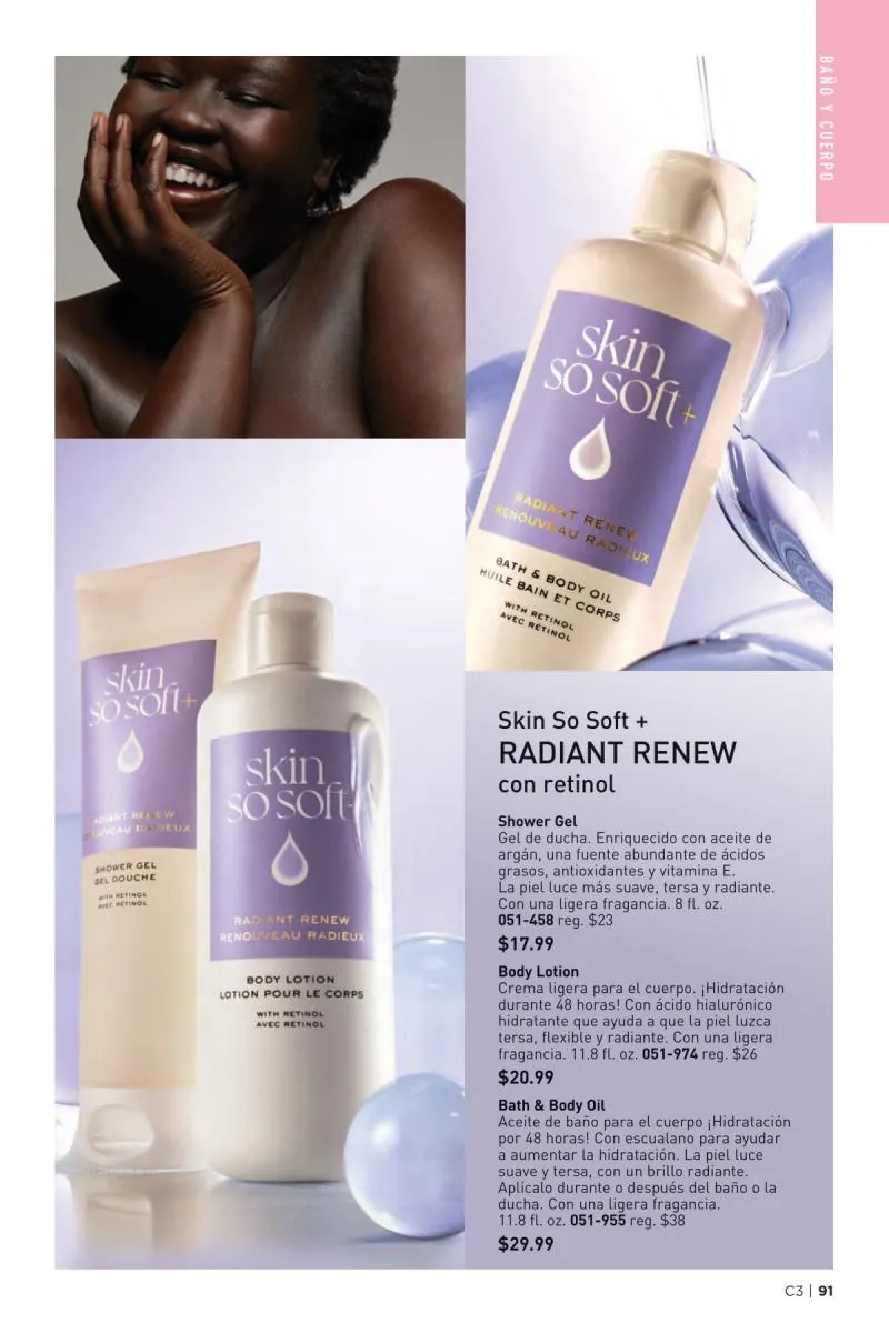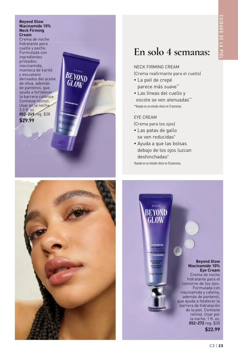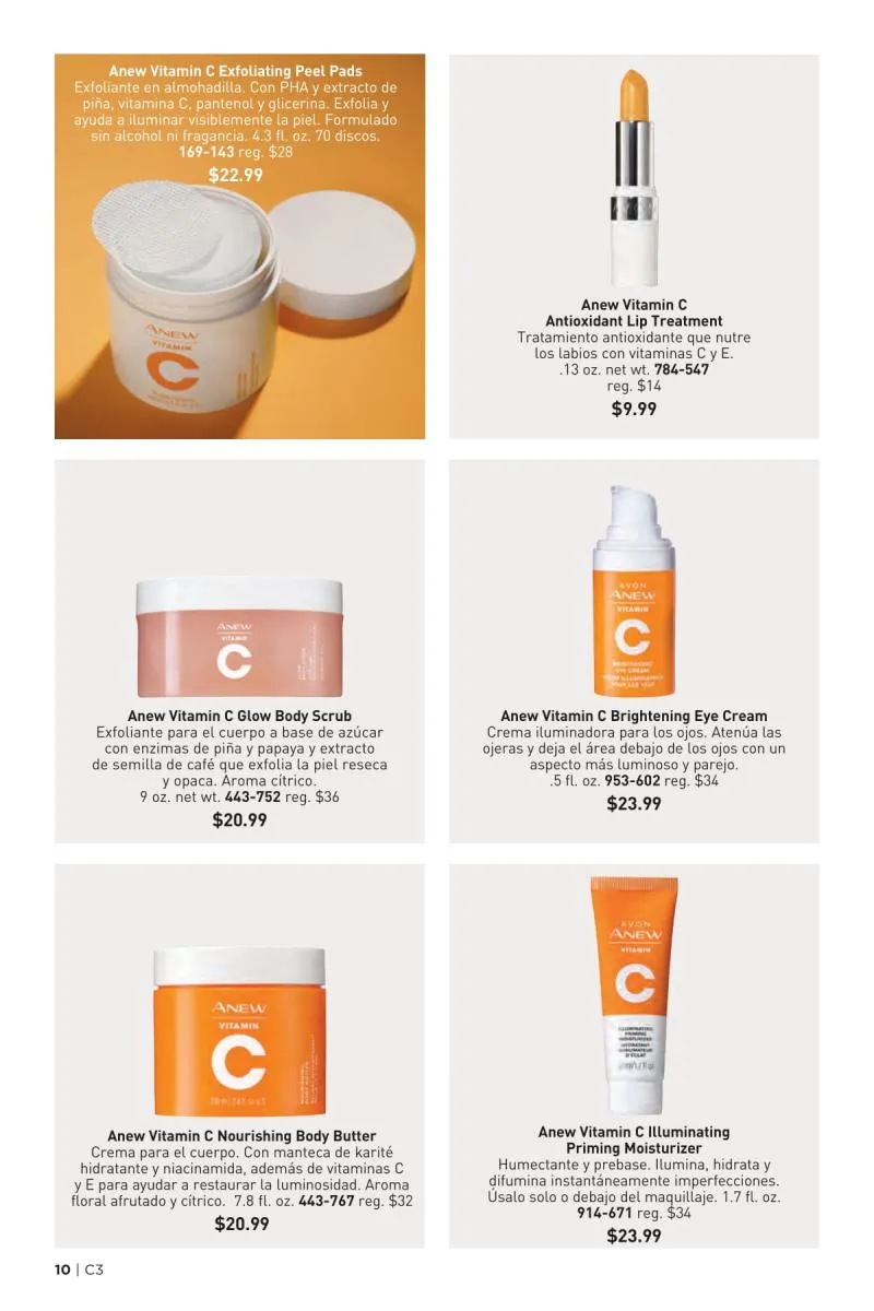 No solo el rostro recibe atención en el catálogo Avon 3 2026 USA. La campaña expande el poder de la vitamina C al cuidado corporal con fórmulas que combinan eficacia y placer sensorial. La crema corporal nutritiva y el exfoliante corporal Glow están formulados con vitaminas, manteca de karité, papaya, café y enzimas de piña, creando una experiencia revitalizante para la piel del cuerpo.
