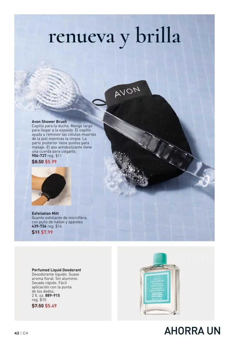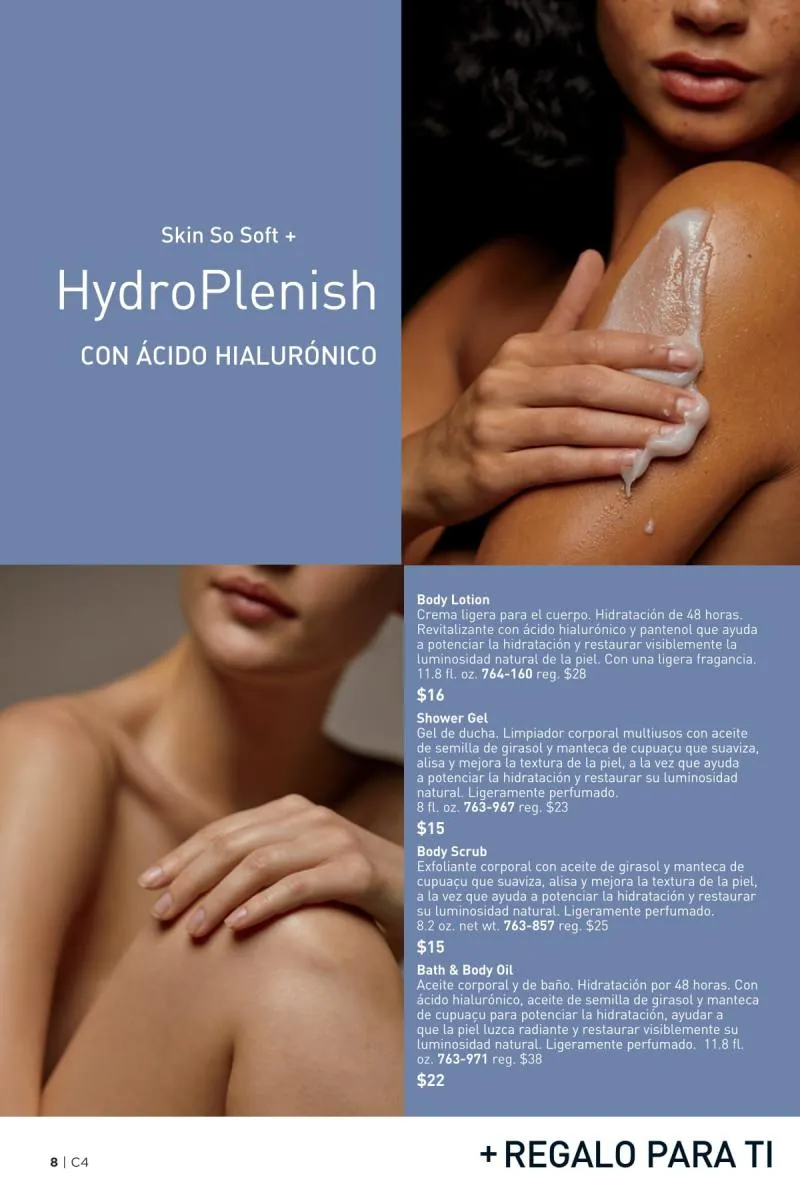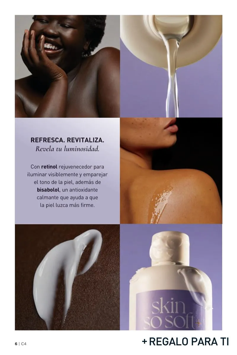Además de atender el rostro y el cabello, el catálogo Avon 4 2026 USA pdf ofrece soluciones para la piel del cuerpo con fórmulas ricas en antioxidantes, ideales para combatir la resequedad, mejorar la textura y mantener la piel nutrida todo el día.
