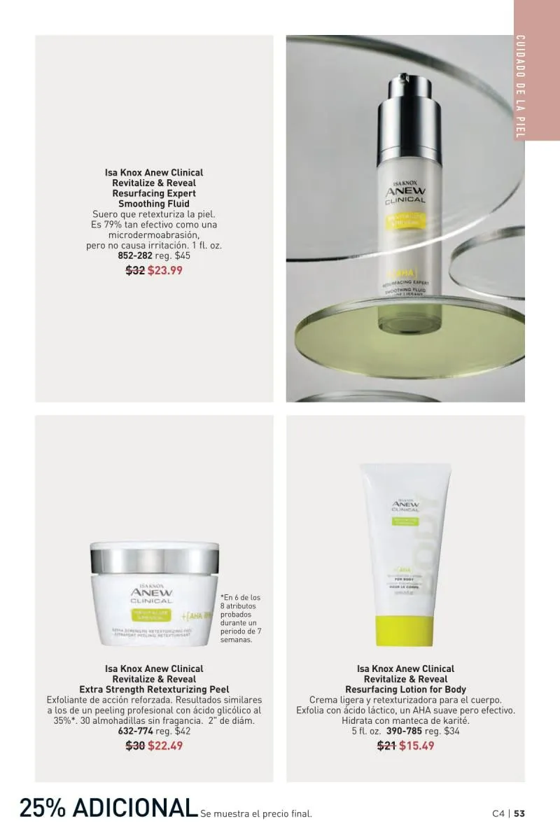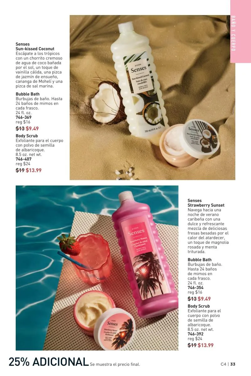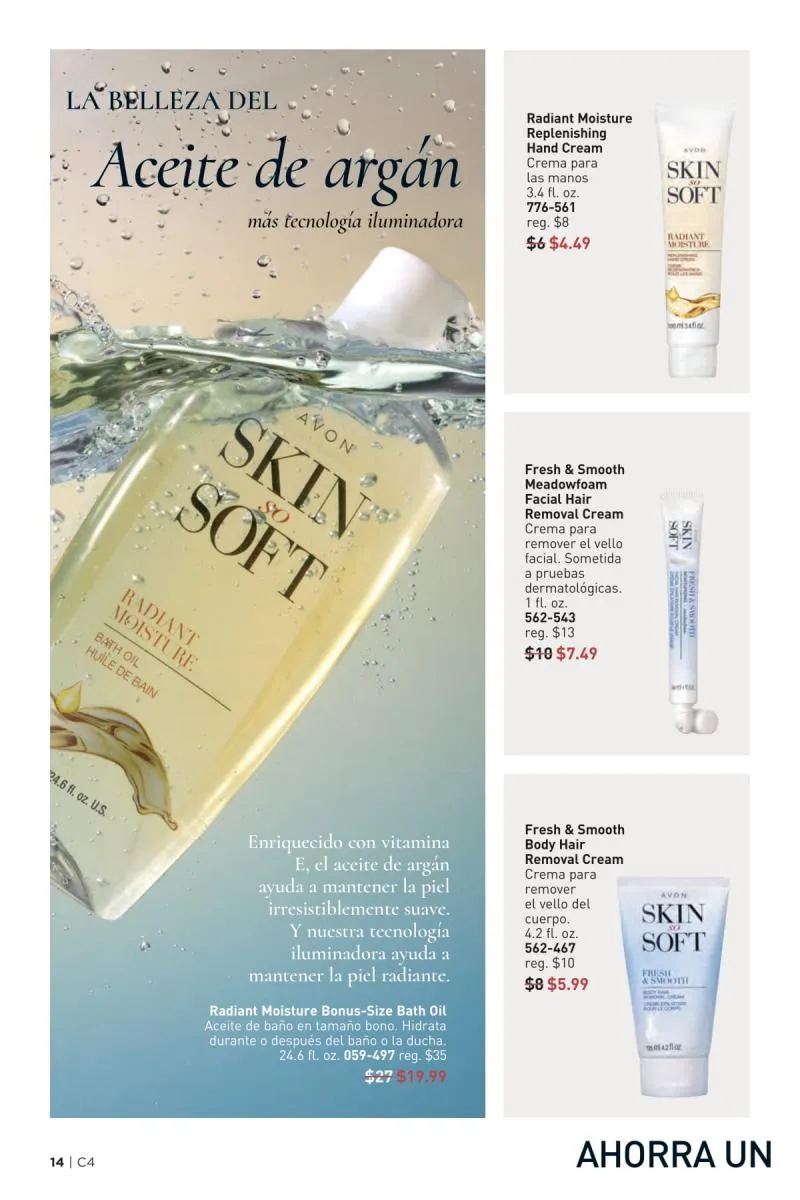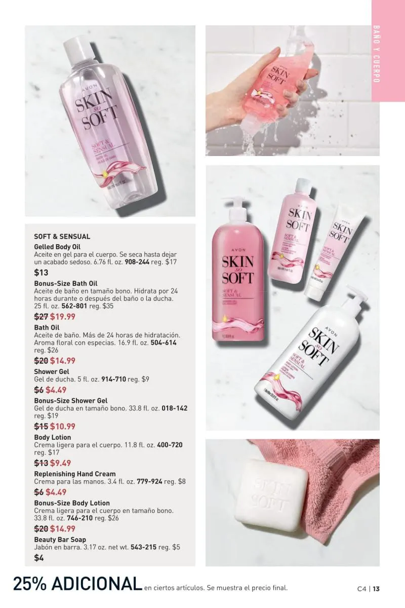 Además de atender el rostro y el cabello, el catálogo Avon 4 2026 USA pdf ofrece soluciones para la piel del cuerpo con fórmulas ricas en antioxidantes, ideales para combatir la resequedad, mejorar la textura y mantener la piel nutrida todo el día.